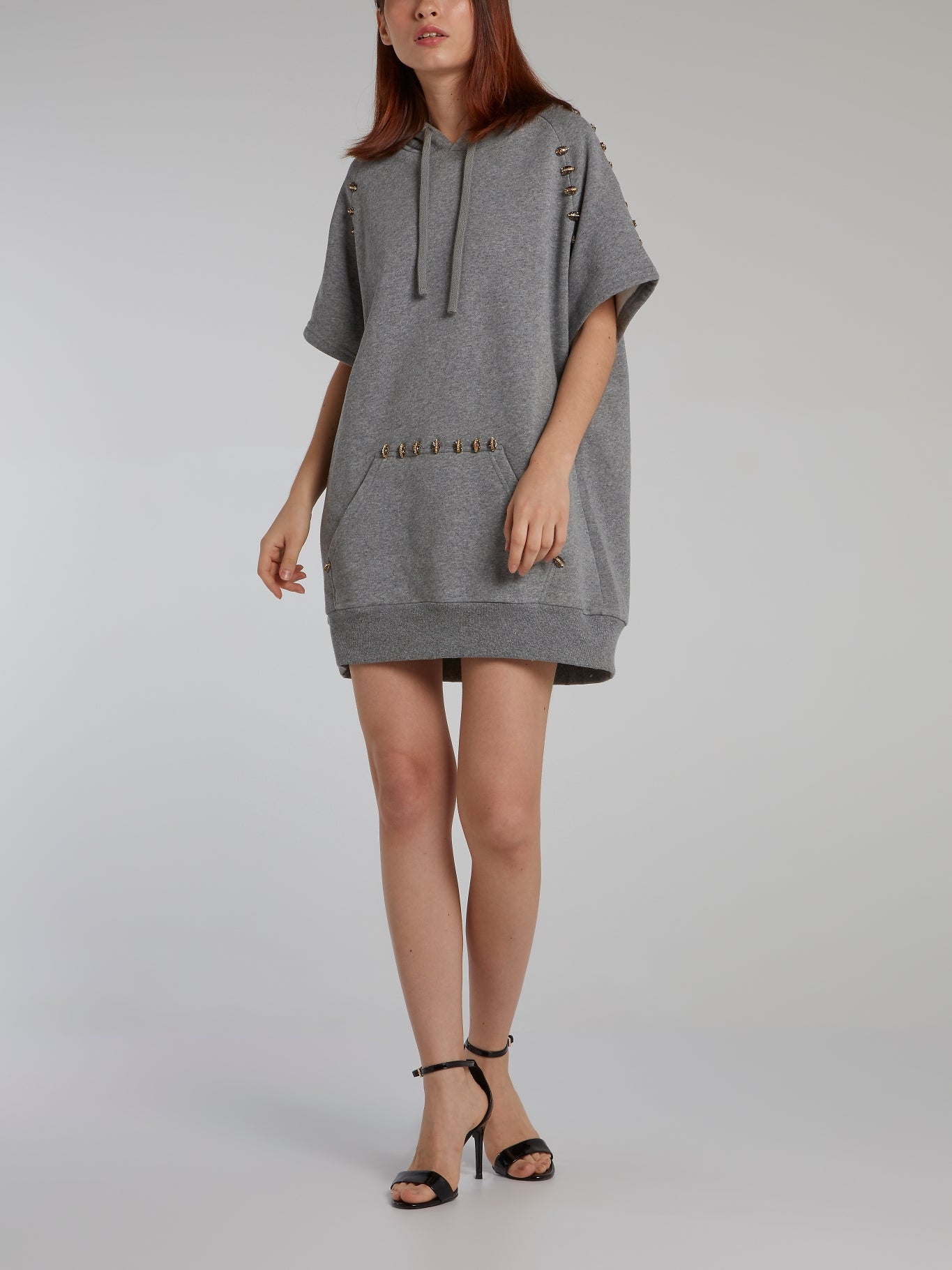 Get ready to turn heads with our Grey Embellished Hoodie Dress by Amen! This stylish piece is a perfect combination of comfort and fashion, making it ideal for any occasion. With its elegant grey color and sparkling embellishments, this hoodie dress will make you feel confident and glamorous all day long!