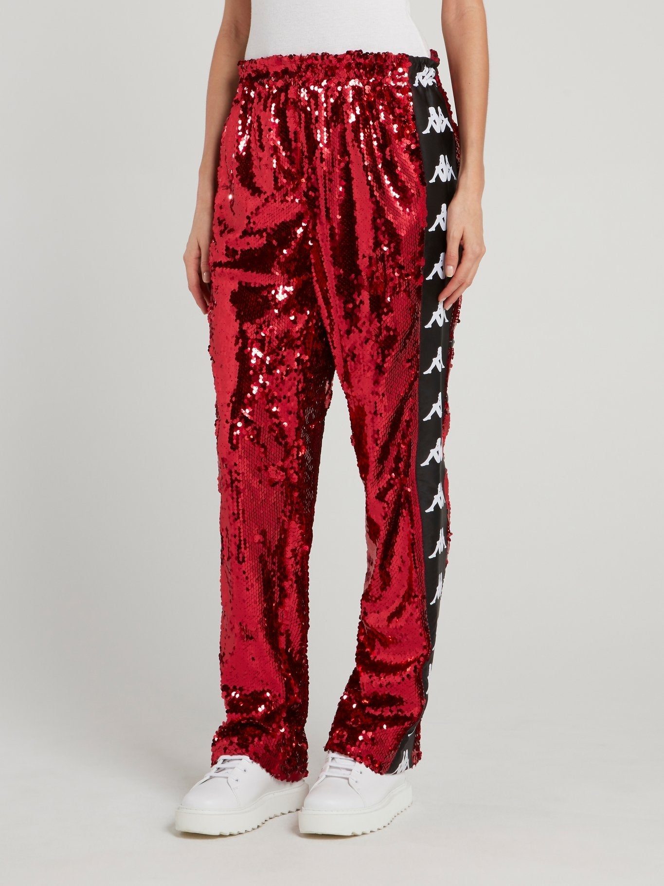 Get ready to dazzle in these Kappa Red Sequin Pants from Faith Connexion. Featuring a playful and bold red color, they are crafted with intricate sequin details that sparkle with every step you take. These pants are the perfect statement piece for any special occasion, adding a touch of effortless glamour to any outfit.