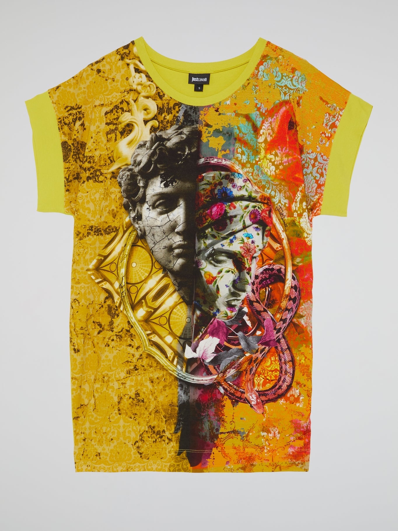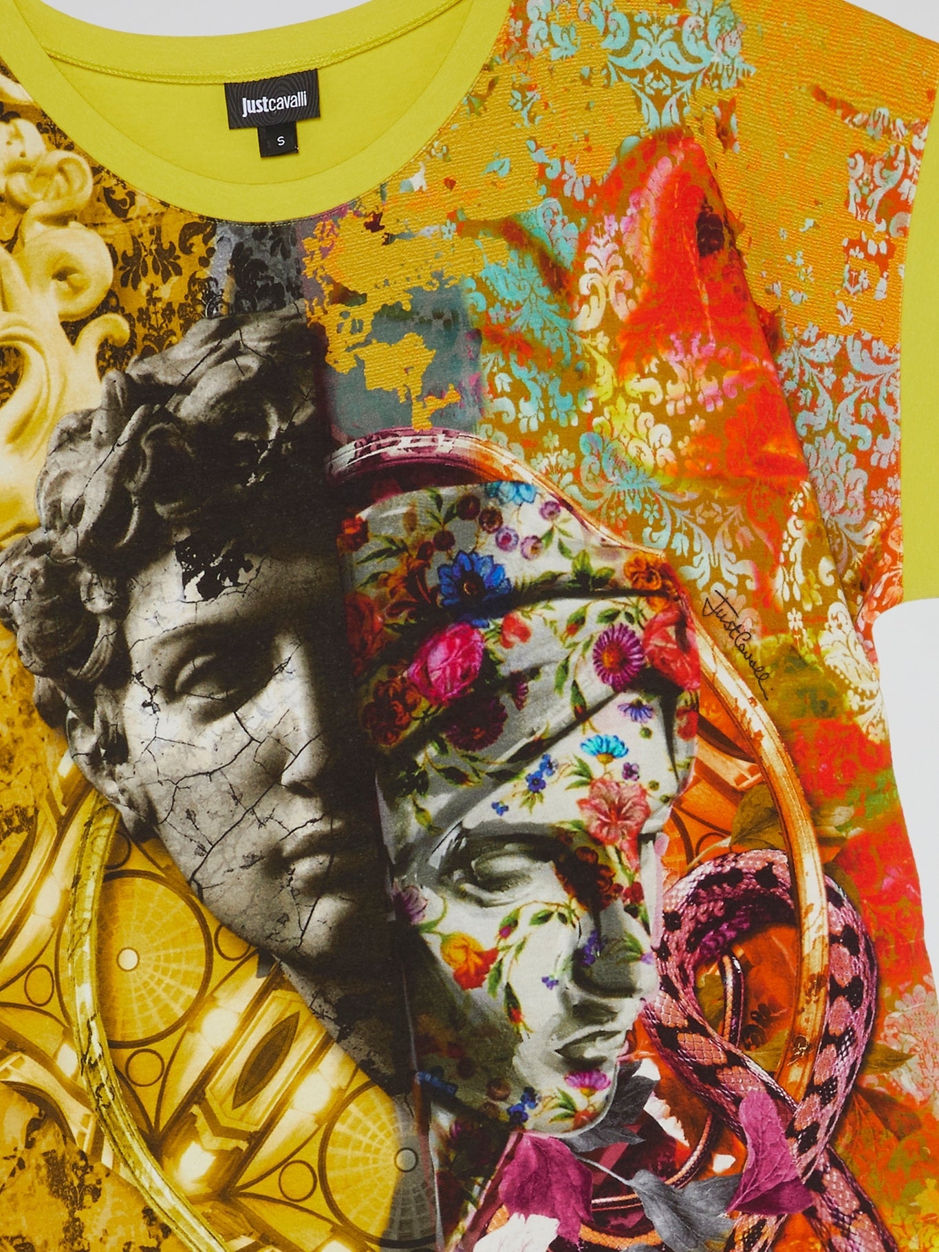 Unleash your inner wild child with the Graphic Print Crewneck Top from Just Cavalli. This statement piece boasts a bold animal print that's perfect for giving your wardrobe a fierce touch. Made with a soft, comfortable fabric and a flattering crew neck, this top is as comfortable as it is beautifully striking. Don't just wear a top, make a statement with Just Cavalli.