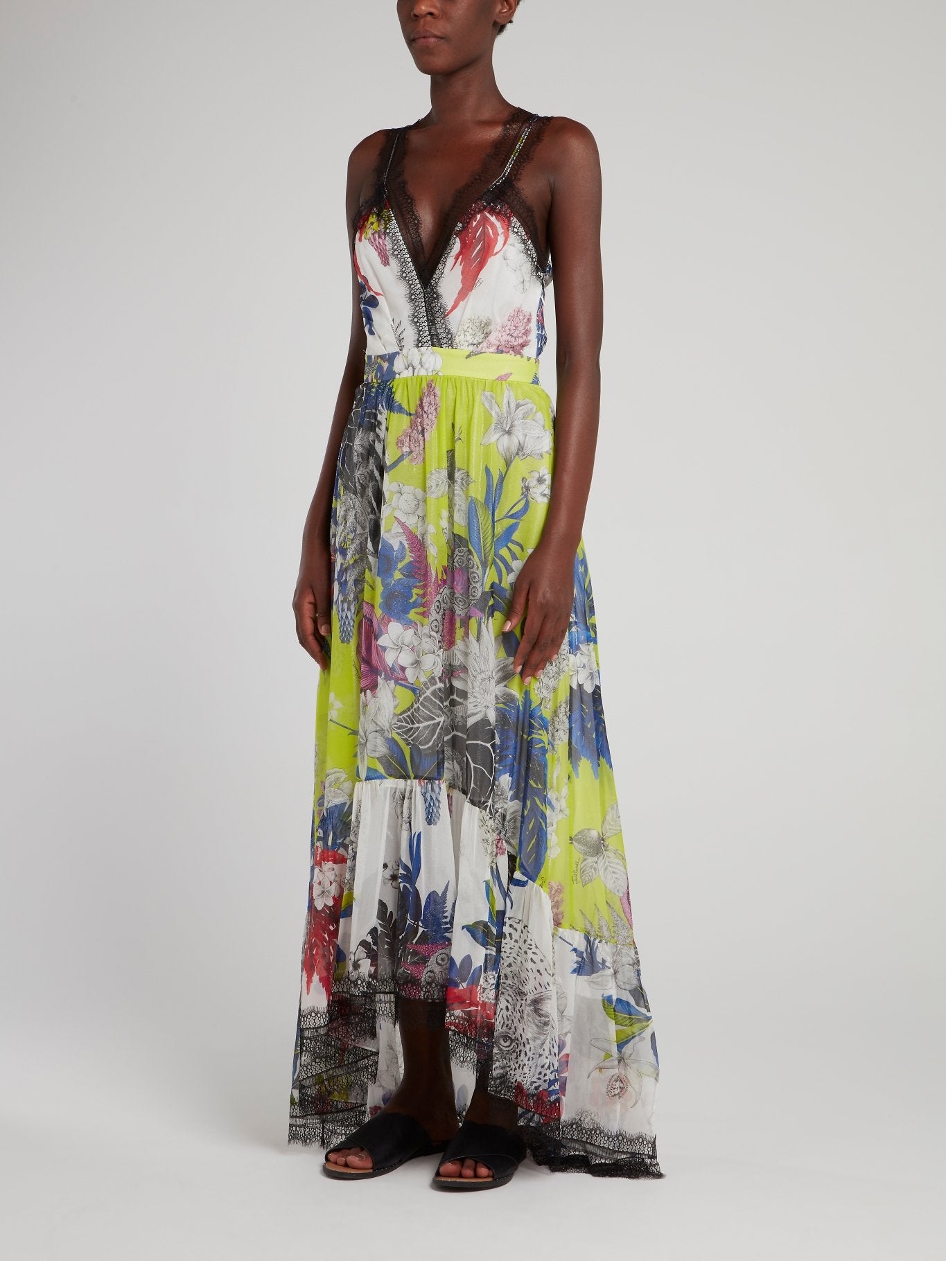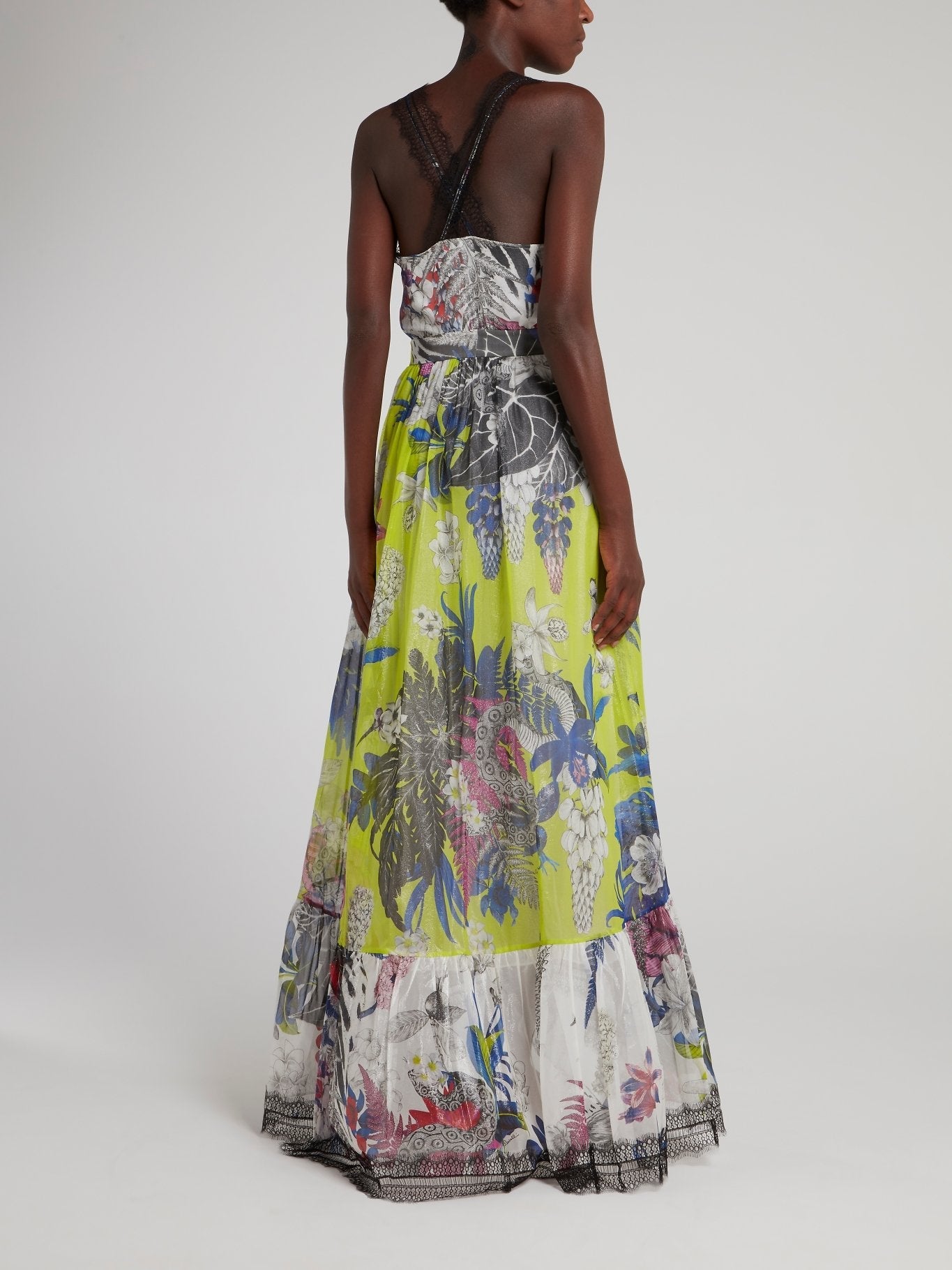 This maxi dress is a spectacular evening choice that reflects the label's exquisite artistry. The toned fabric accentuates the ornate bodice of the garment, while the floor-sweeping skirt emphasizes the design's timeless glamour. Dazzling earrings and lofty stilettos will be the ideal match to the dress' elegant codes.