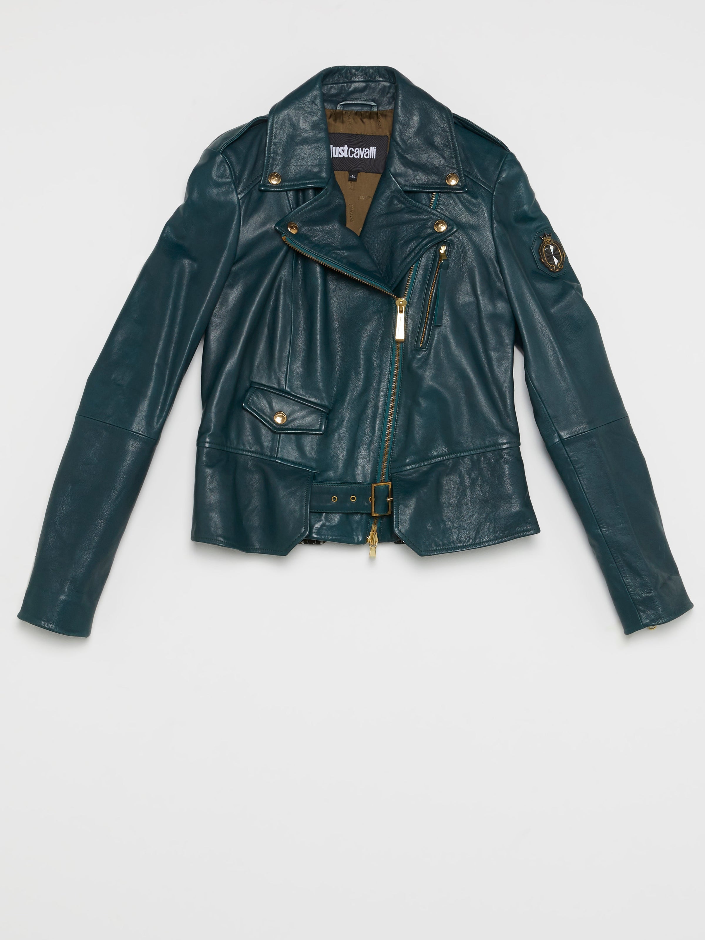 Introducing the ultimate statement piece for any fashionista - the Green Belted Leather Jacket from Just Cavalli! Crafted from high-quality leather, this jacket is not only durable but also soft and comfortable to wear. The striking green color, combined with the stylish belt design, is sure to turn heads and make you stand out from the crowd.