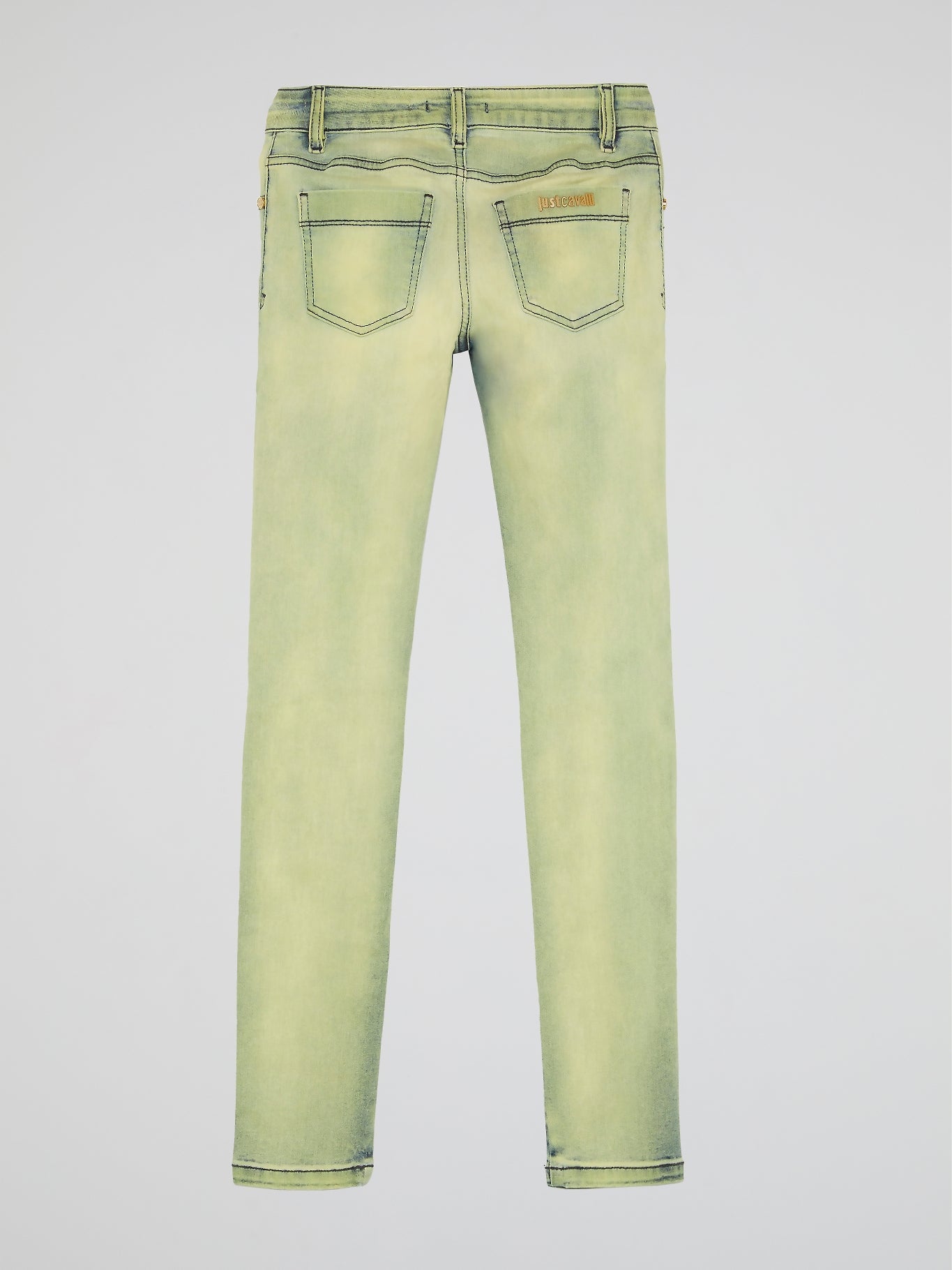Introducing Green Acid Wash Jeans from Just Cavalli ��� a statement piece that blends the edgy grunge vibe with sustainability. These jeans are carefully crafted from eco-friendly materials and treated with acid wash technique to deliver a dramatic, eye-catching look. Are you ready to unleash your rebellious spirit and make an eco-friendly fashion statement? Just Cavalli has got you covered with these Green Acid Wash Jeans!