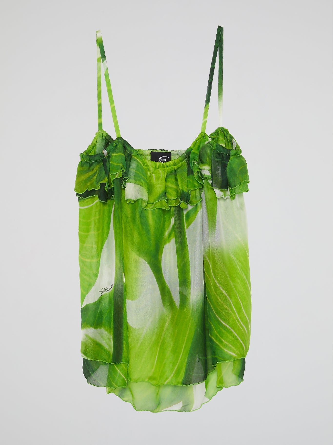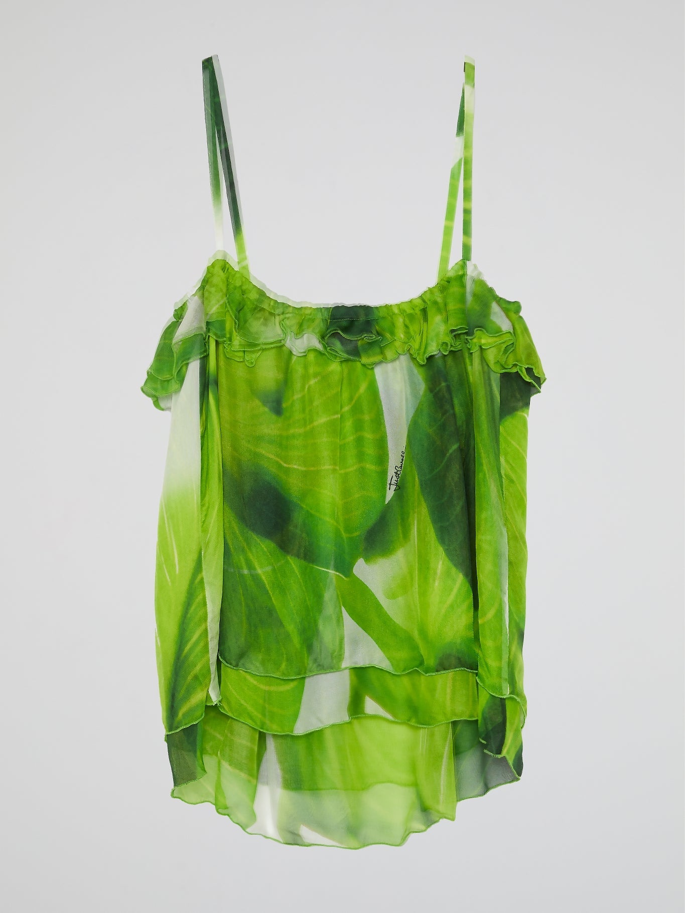 The Green Layered Mesh Top by Just Cavalli is the epitome of effortless elegance. With its delicate mesh fabric, this top adds a touch of femininity to any outfit. The layered design creates beautiful movement and flow, making it the perfect statement piece for any fashion-forward wardrobe.