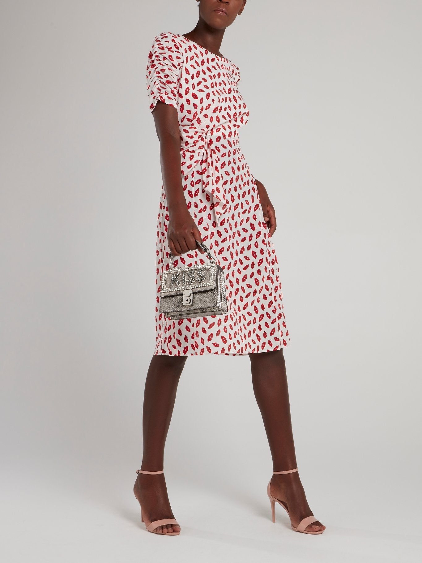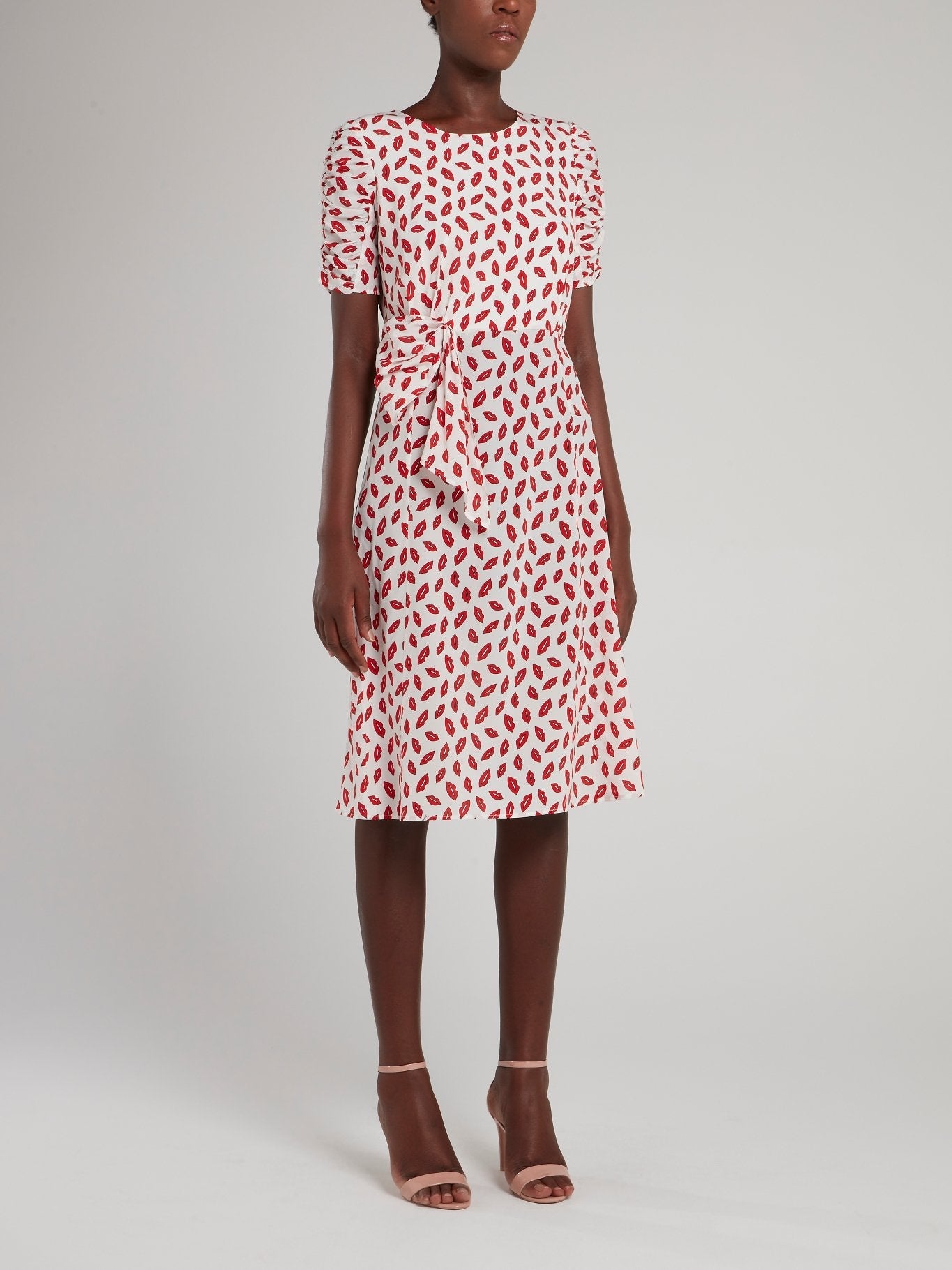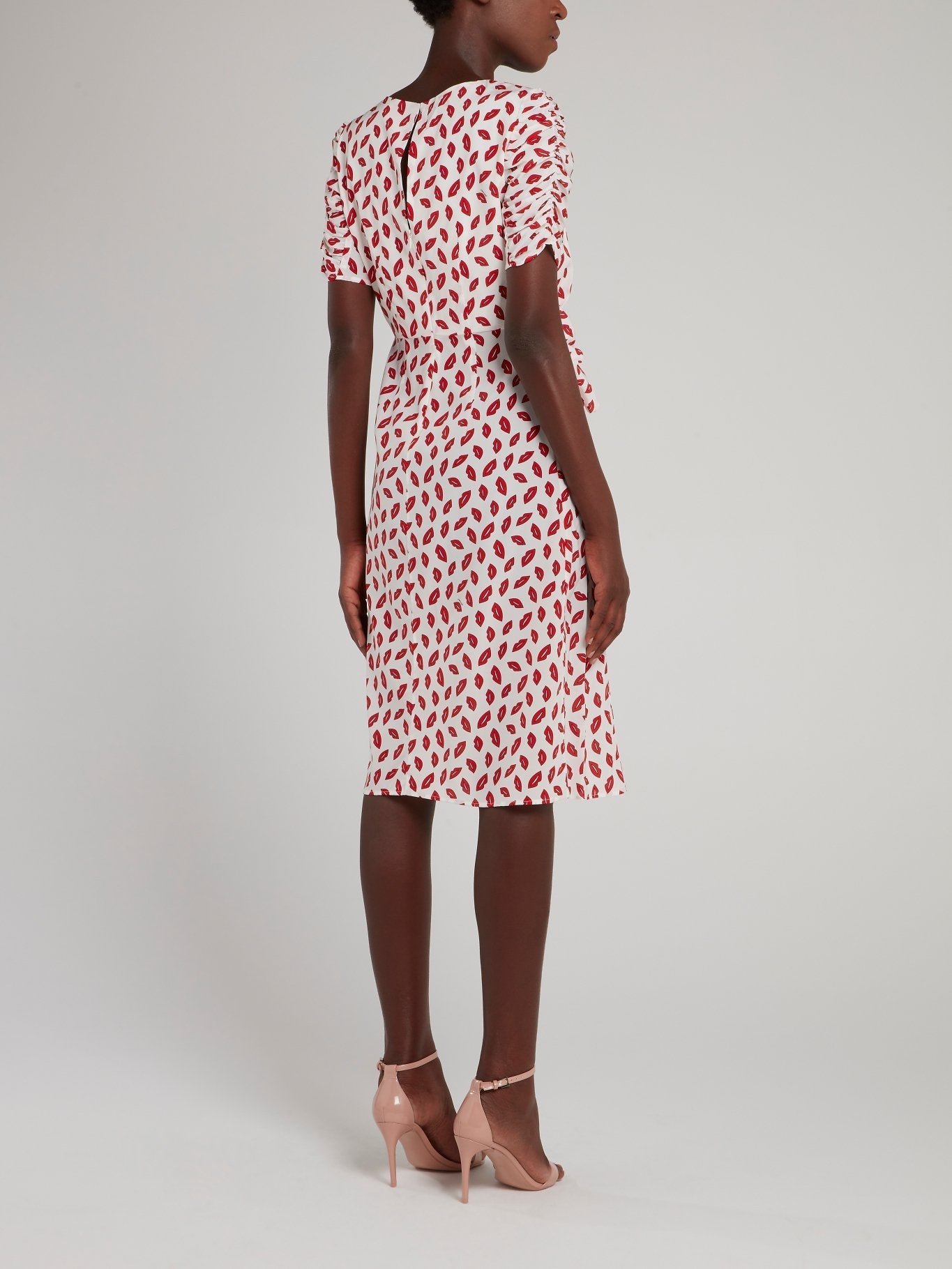 The Lip Print Ruched Sleeve Midi Dress by Parosh is the perfect combination of playful and sophisticated. Featuring a unique lip print design, this dress will make a statement wherever you go. With its figure-hugging ruched sleeves and midi-length hemline, this dress is sure to turn heads and make you feel confident and stylish.