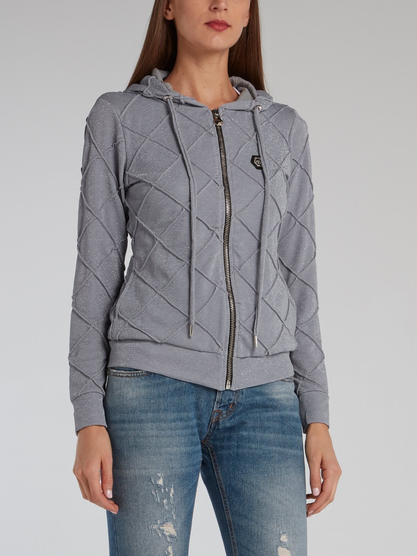 Wrap yourself in luxury with Philipp Plein's Grey Lurex Hoodie Sweatshirt. Crafted from a blend of premium materials, this sweatshirt features an alluring, shimmering lurex finish that adds a touch of glamour to your casual outfit. With a comfortable, relaxed fit and an eye-catching design, this hoodie sweatshirt is perfect for lounging or running errands in style.