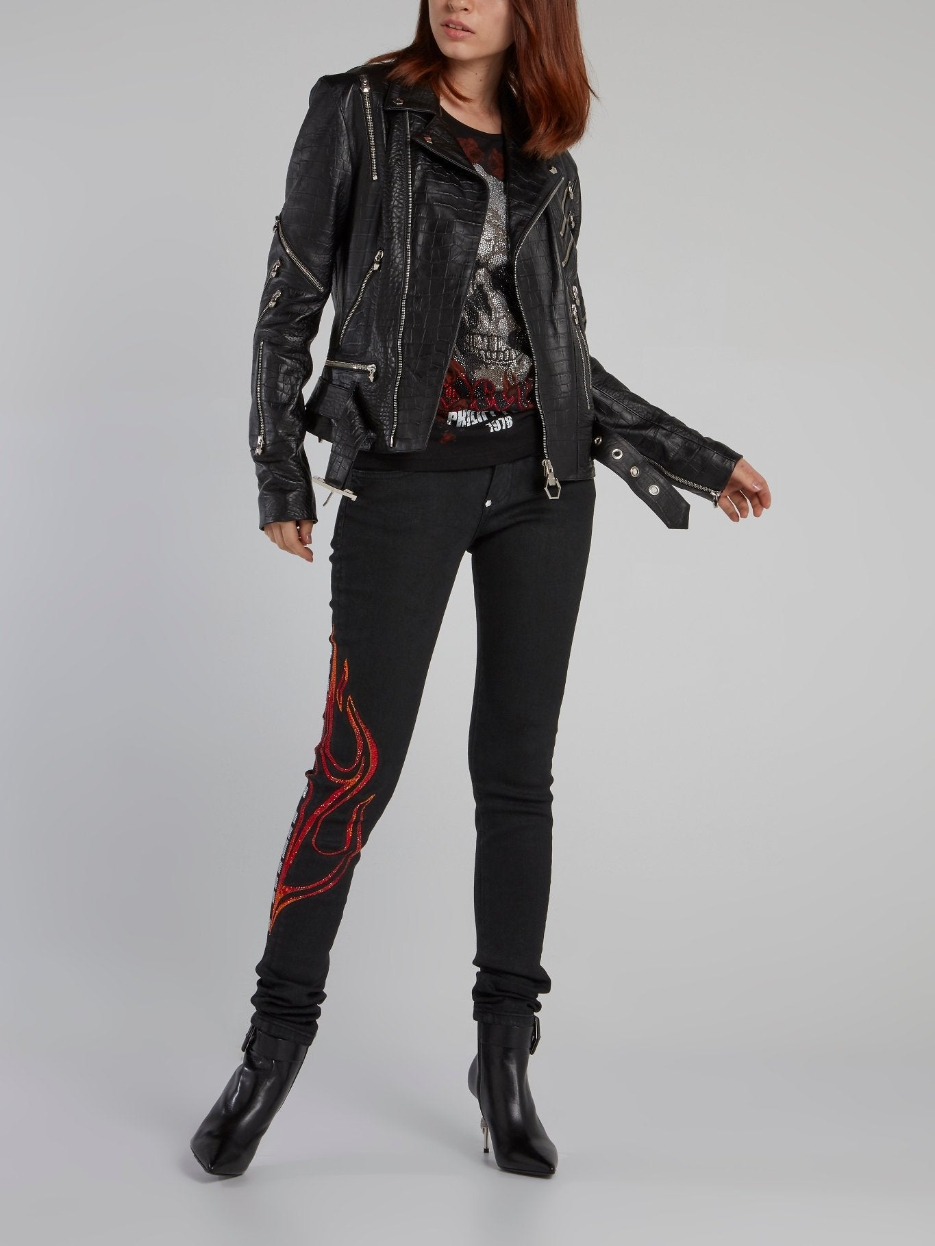 Unleash your dark side with the Gothic Plein Black Rose Skull T-Shirt from the iconic Philipp Plein. This edgy and stylish tee is made from premium quality materials with a unique design that is sure to turn heads. Get ready to rock your badass look and showcase your individuality with this daring and bold statement piece.
