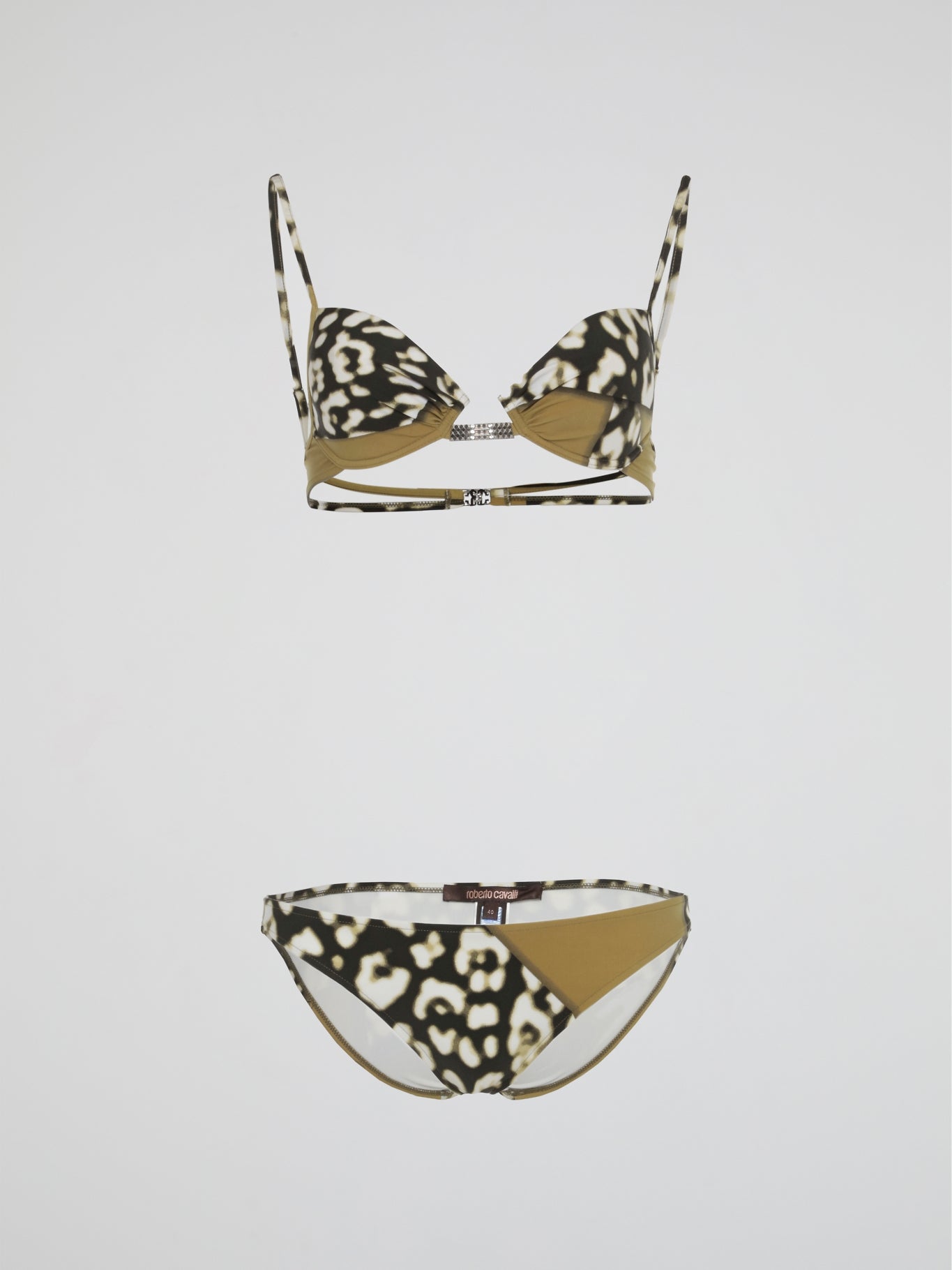 Looking to add some ferocity to your swimwear collection? Look no further than the Green Leopard Print Bikini Set from Roberto Cavalli - a fierce choice for the fashion-forward beach babe. Made with high-quality materials and unique design details, this bikini set is sure to turn heads and make a statement wherever you wear it. Embrace your wild side and shop the Green Leopard Print Bikini Set today!