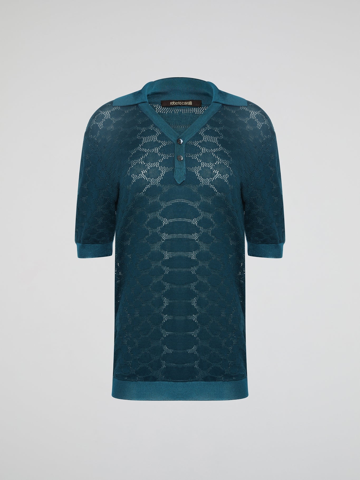 Step into the wild with the Green Reptilian Knitted Blouse by Roberto Cavalli ��� a mesmerizing blend of sophistication and untamed allure. Crafted with meticulous attention to detail, this alluring garment showcases a captivating reptilian-inspired pattern that dances as you move, making a statement wherever you go. Embrace your inner fashion predator and let this striking blouse unleash your fierce and fabulous style.