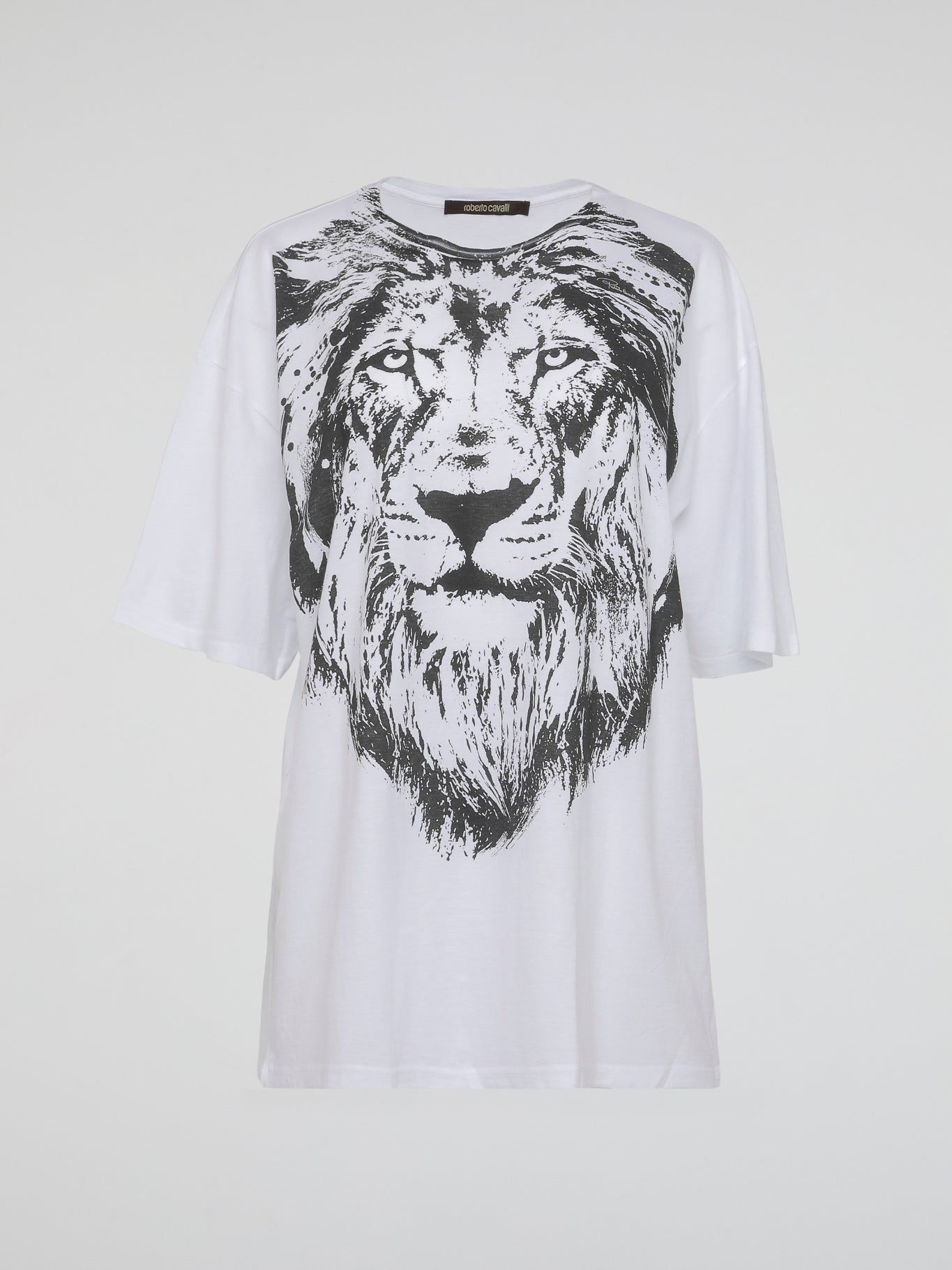 Unleash your wild side with the Lion Print Oversized T-Shirt from Roberto Cavalli. Crafted with finesse and a hint of rebelliousness, this standout piece features a majestic roaring lion, symbolizing strength and charisma. Embrace its bold design and effortlessly make a statement in the fashion jungle.