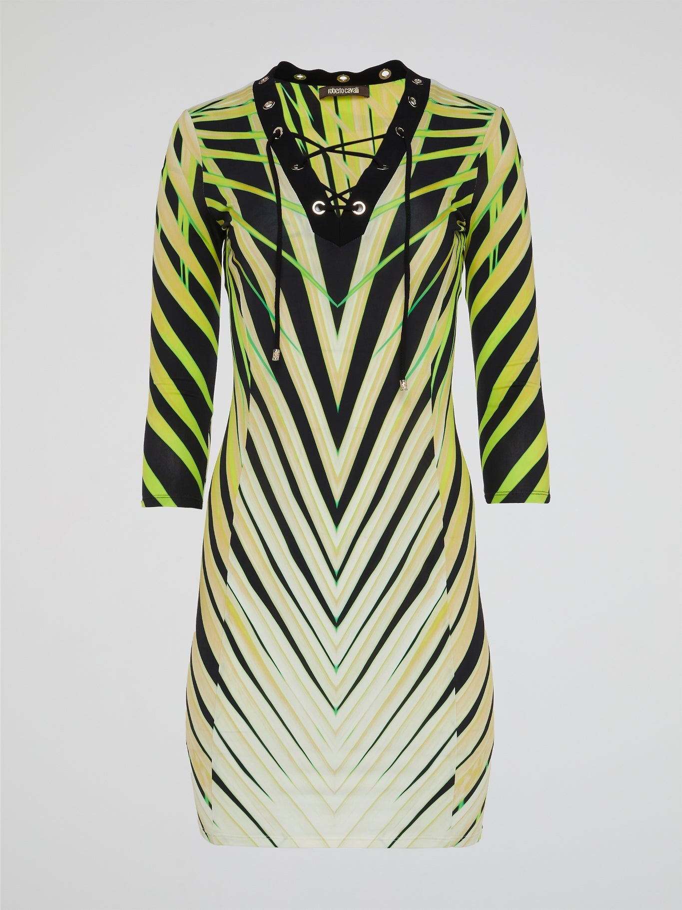 Elevate your wardrobe with the stunning Geometric Print Lace Up Dress from Roberto Cavalli, a true masterpiece of design and craftsmanship. This eye-catching dress features a bold geometric print that is sure to turn heads wherever you go. With its flattering lace-up detailing and luxurious fabric, this dress is the perfect choice for any special occasion.