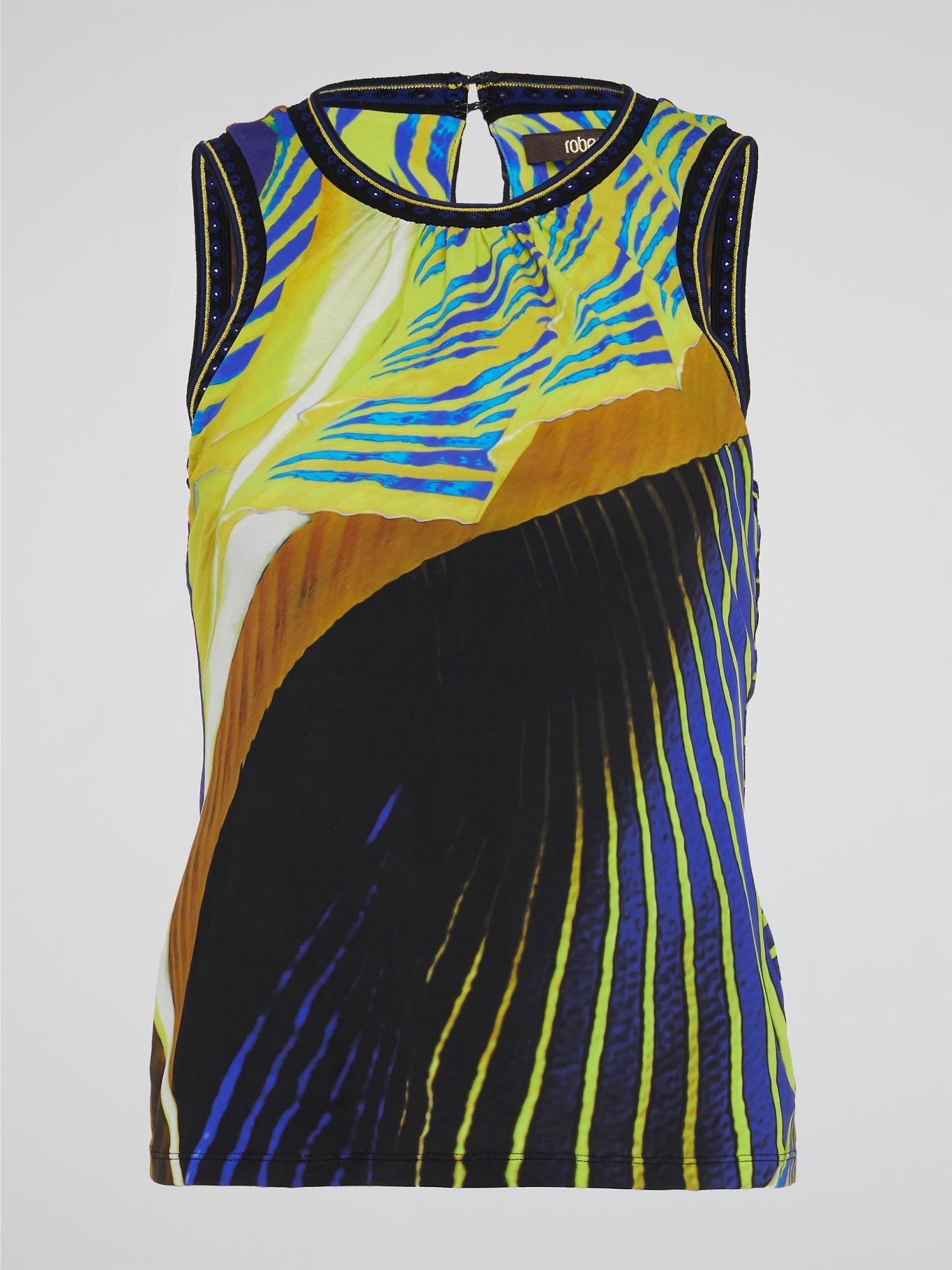 Embrace your inner avant-garde fashionista with the mesmerizing Geometric Print Sleeveless Top by Roberto Cavalli. This statement piece features bold lines and vibrant colors that will turn heads wherever you go. Let your style speak for itself with this eye-catching top that is sure to elevate any outfit to a whole new level of chic.