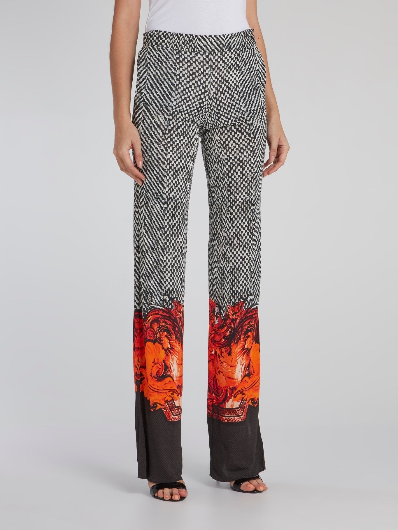 Step up your wardrobe game with Roberto Cavalli's Jacquard Weave Straight Cut Trousers. These pants scream high fashion with their impeccable fit and unique print, guaranteed to make a statement no matter where you go. Perfect for dressing up or down, these trousers are a must-have for any fashion-forward individual.