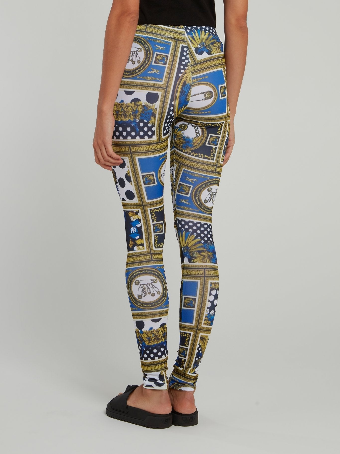 Step up your fashion game with these Jacquard Print High Waist Leggings from Versus Versace. The intricate pattern is eye-catching and unique, making you stand out from the crowd. And with the high waist design, these leggings provide both style and comfort for all-day wear. Elevate your wardrobe with this must-have piece!