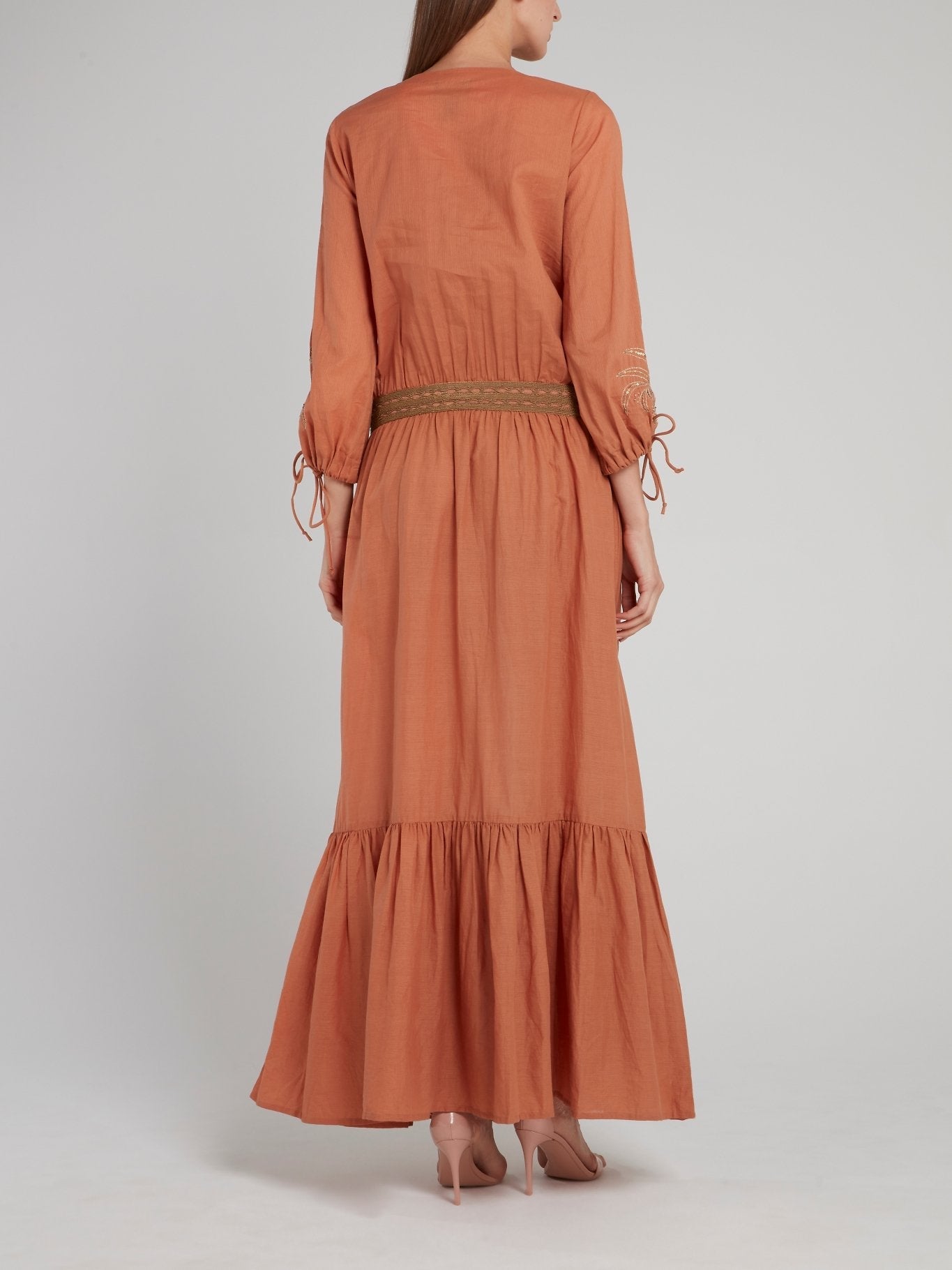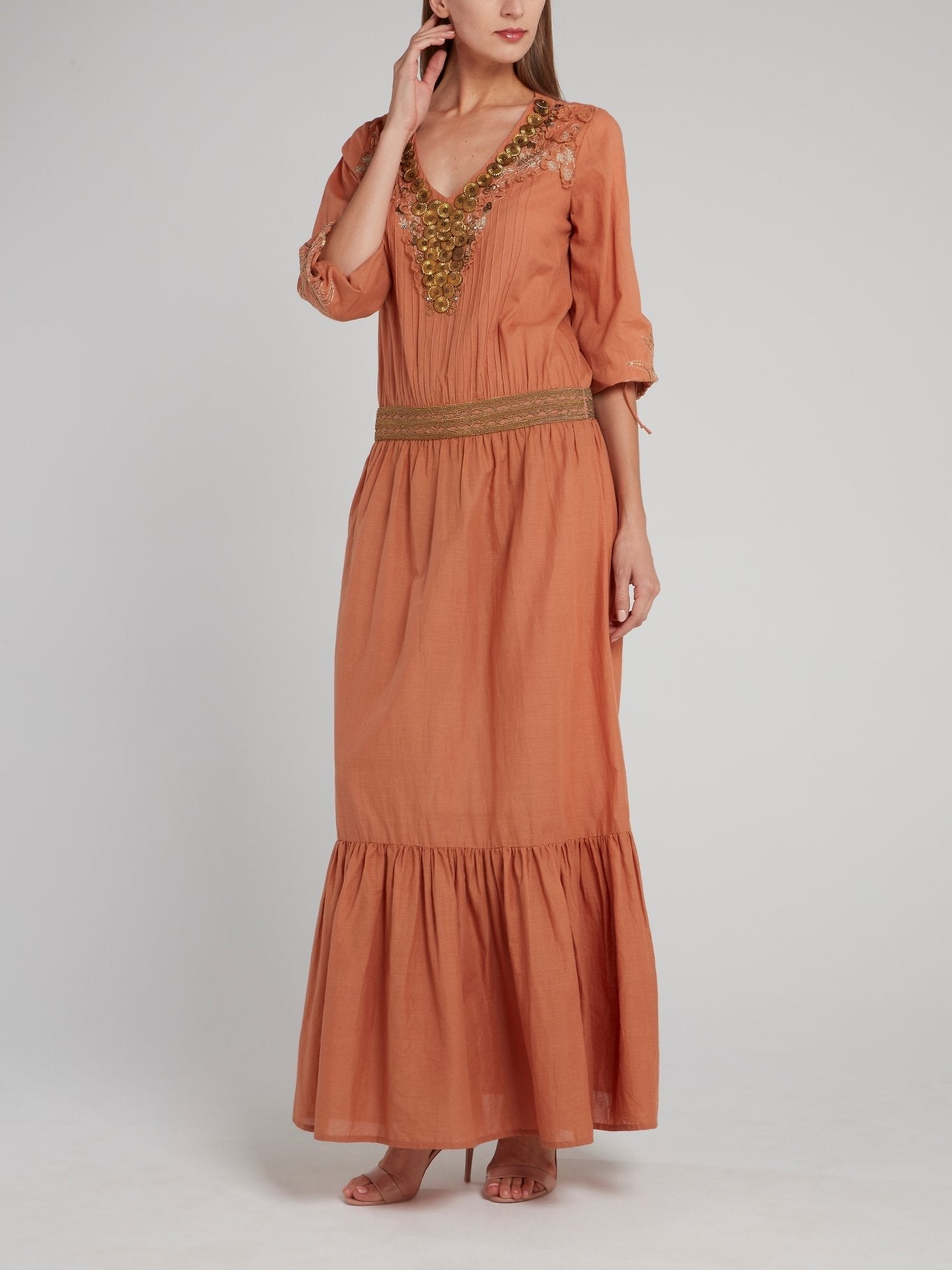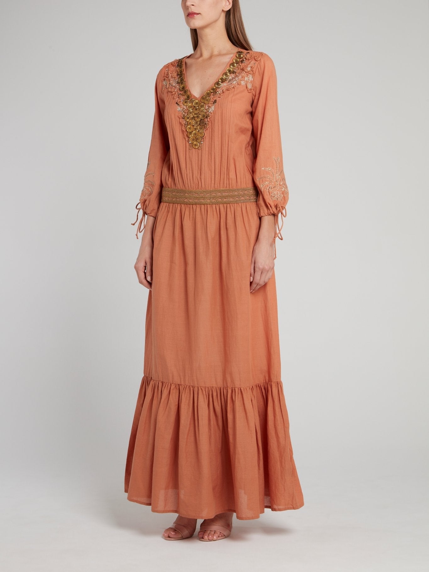 On important occasions, the gleaming creation of this world-renowned label will endow you with an impressive first impression. From the shoulders to the full-length hem, this sartorial masterpiece is accentuated and tailored to perfection. Look and feel your best with this dress's body-flattering outline and feminine aesthetic.