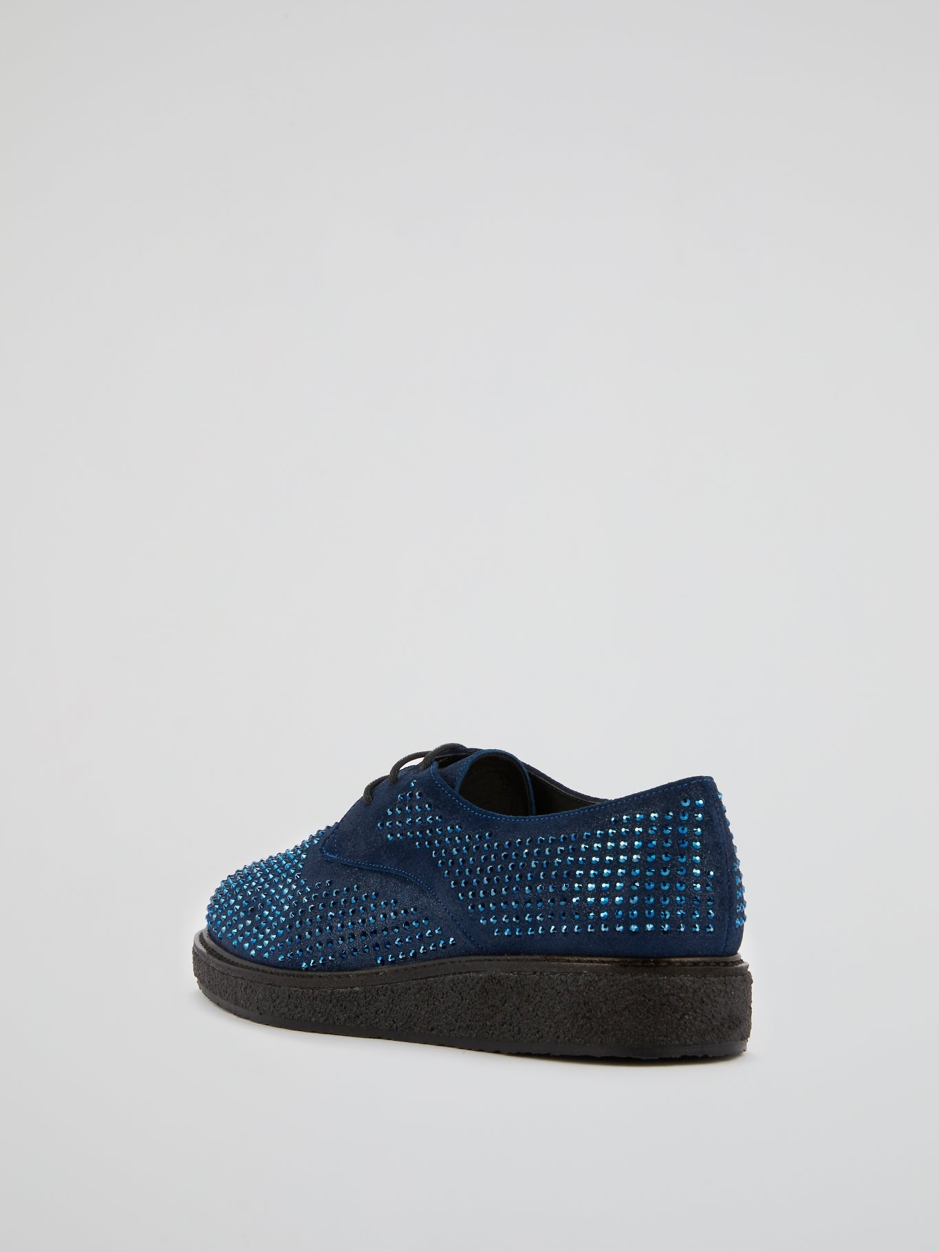 Step up your shoe game with the Navy Studded Derby Shoes by Eddy Daniele! These classic derby shoes receive a playful twist with silver-tone studs adorning the rich navy leather. Comfortable and versatile, they can take you from work to weekend with ease - a must-have for any fashion-forward wardrobe.