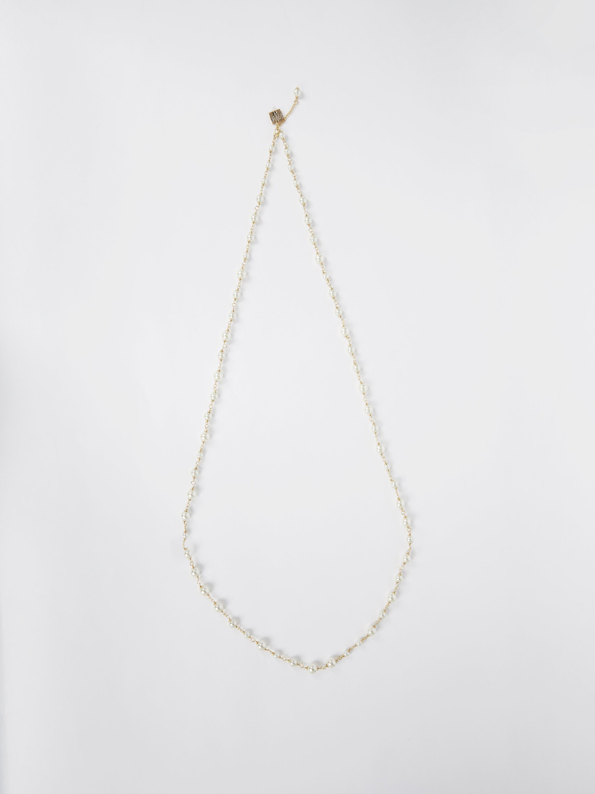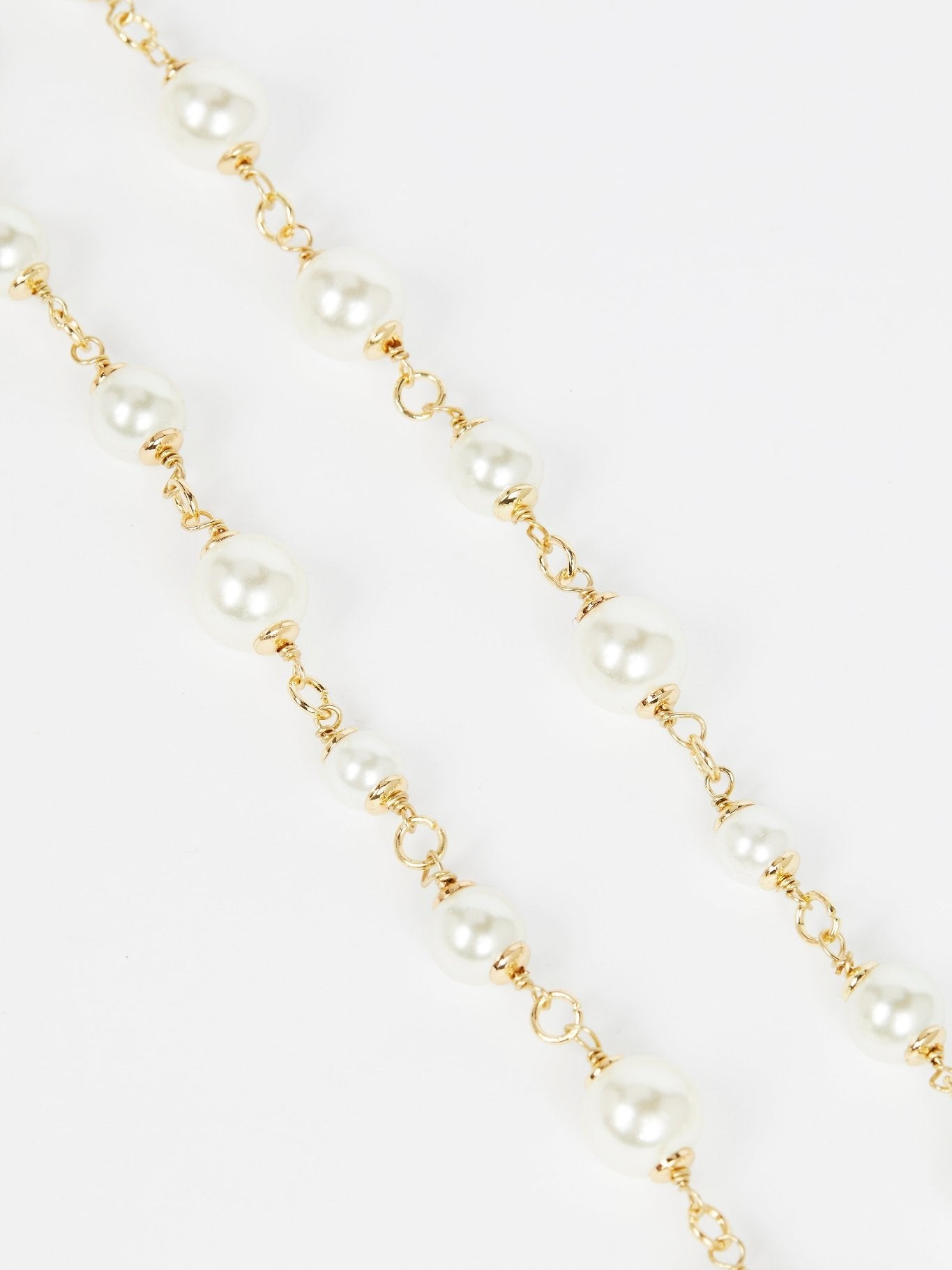 Introducing the luxurious and elegant Gold Pearl Link Necklace by Edward Achour Paris. This stunning piece of jewelry features luminous pearls gracefully dangling from a delicate golden chain, creating a timeless and sophisticated look. Perfect for any occasion, this necklace is a must-have for any fashion-forward individual who wants to add a touch of glamour and beauty to their ensemble.