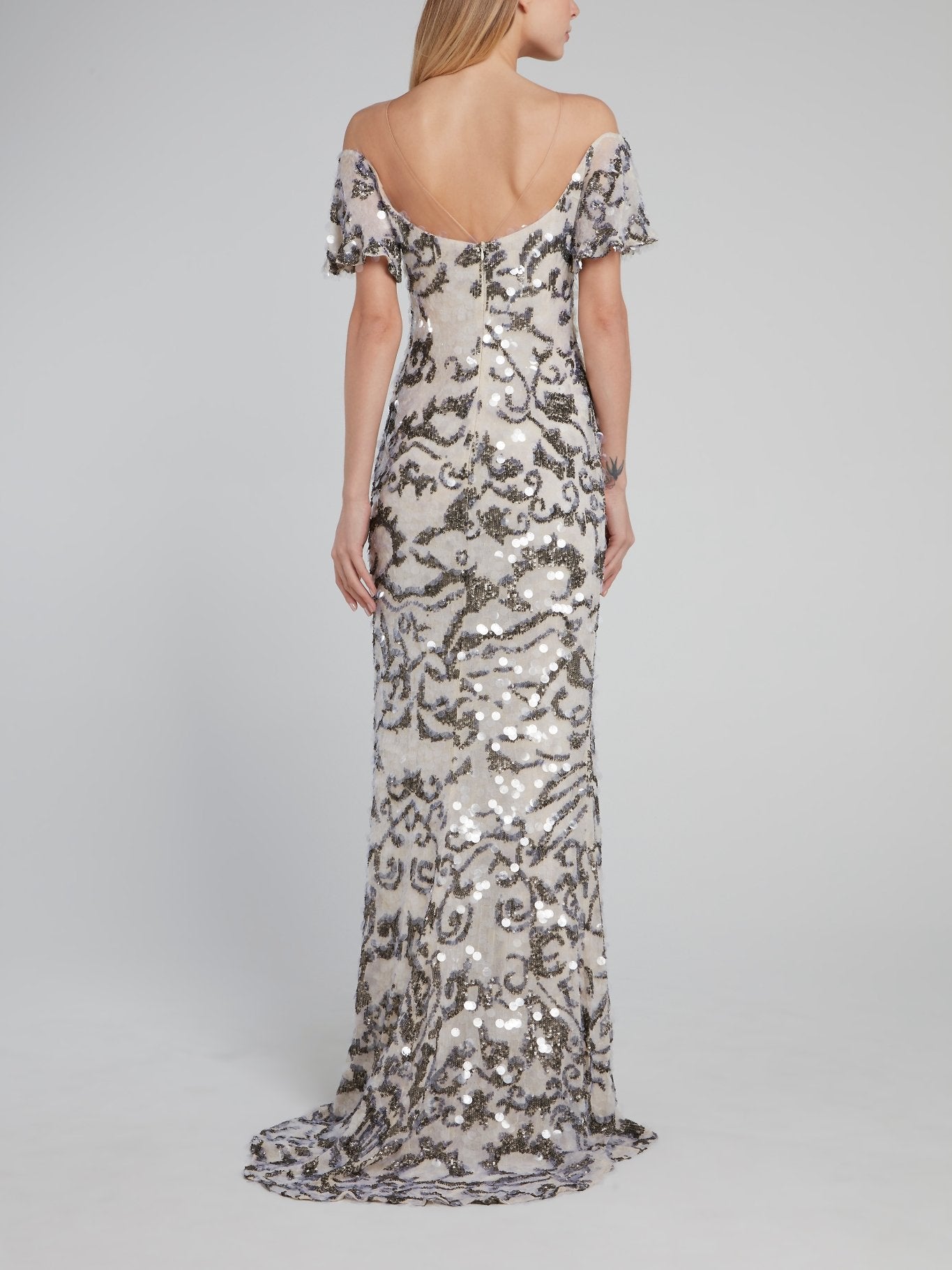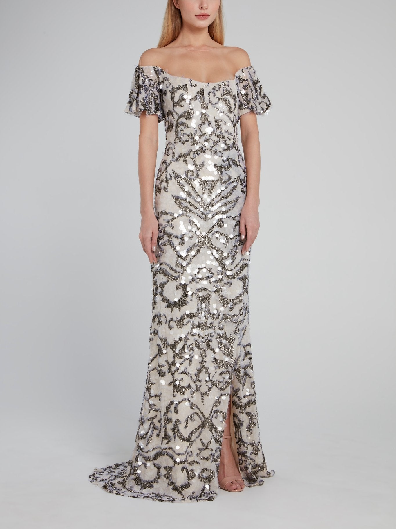 Fully Embellished Off-The-Shoulder Maxi Dress