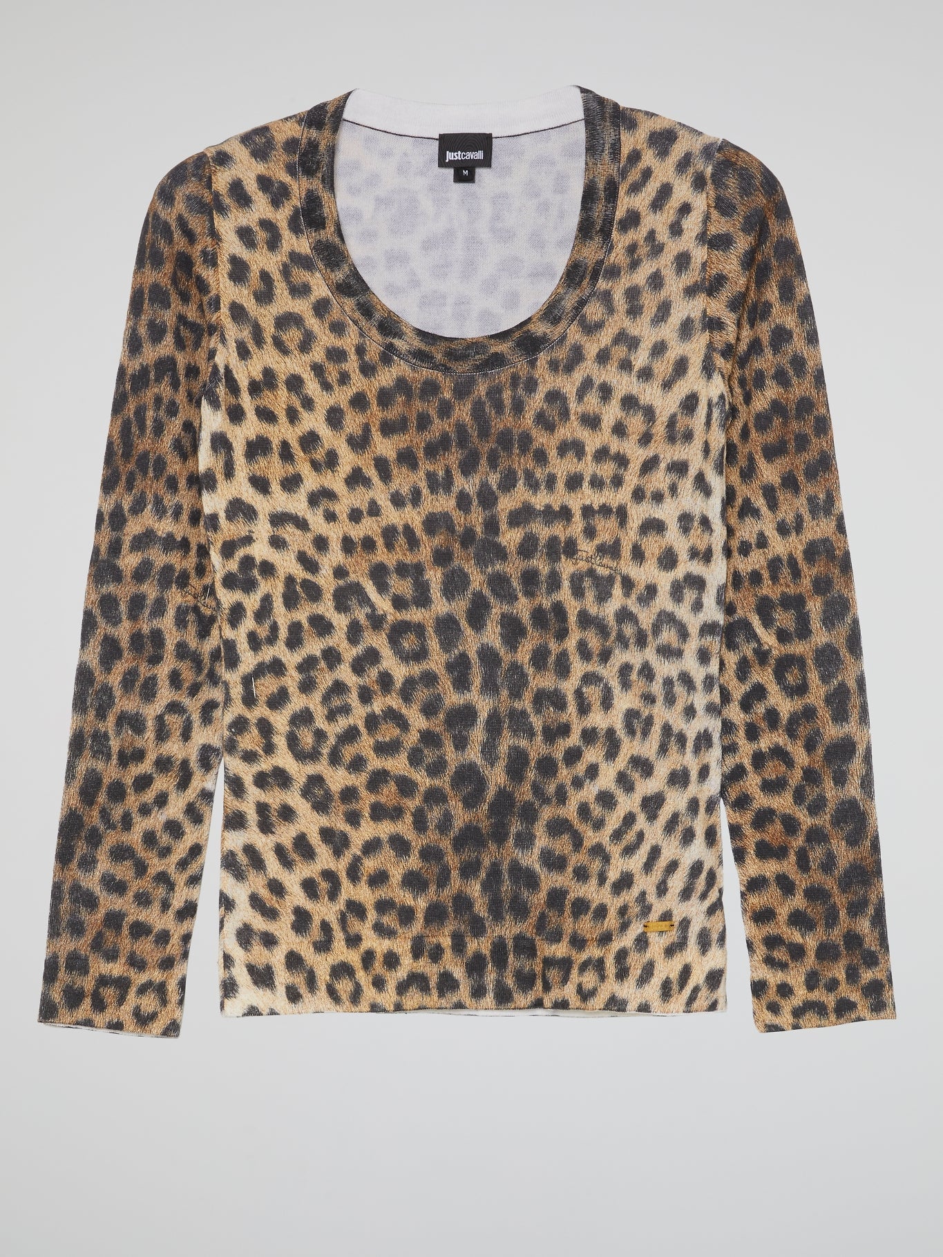 Unleash the fierce fashionista in you with the Leopard Print Long Sleeve Top by Just Cavalli. Embrace your wild side with this bold and trendy top, perfect for pairing with your favorite jeans or skirts. Crafted with premium materials and attention to detail, this top is sure to make you stand out from the crowd with its eye-catching print and flattering silhouette.
