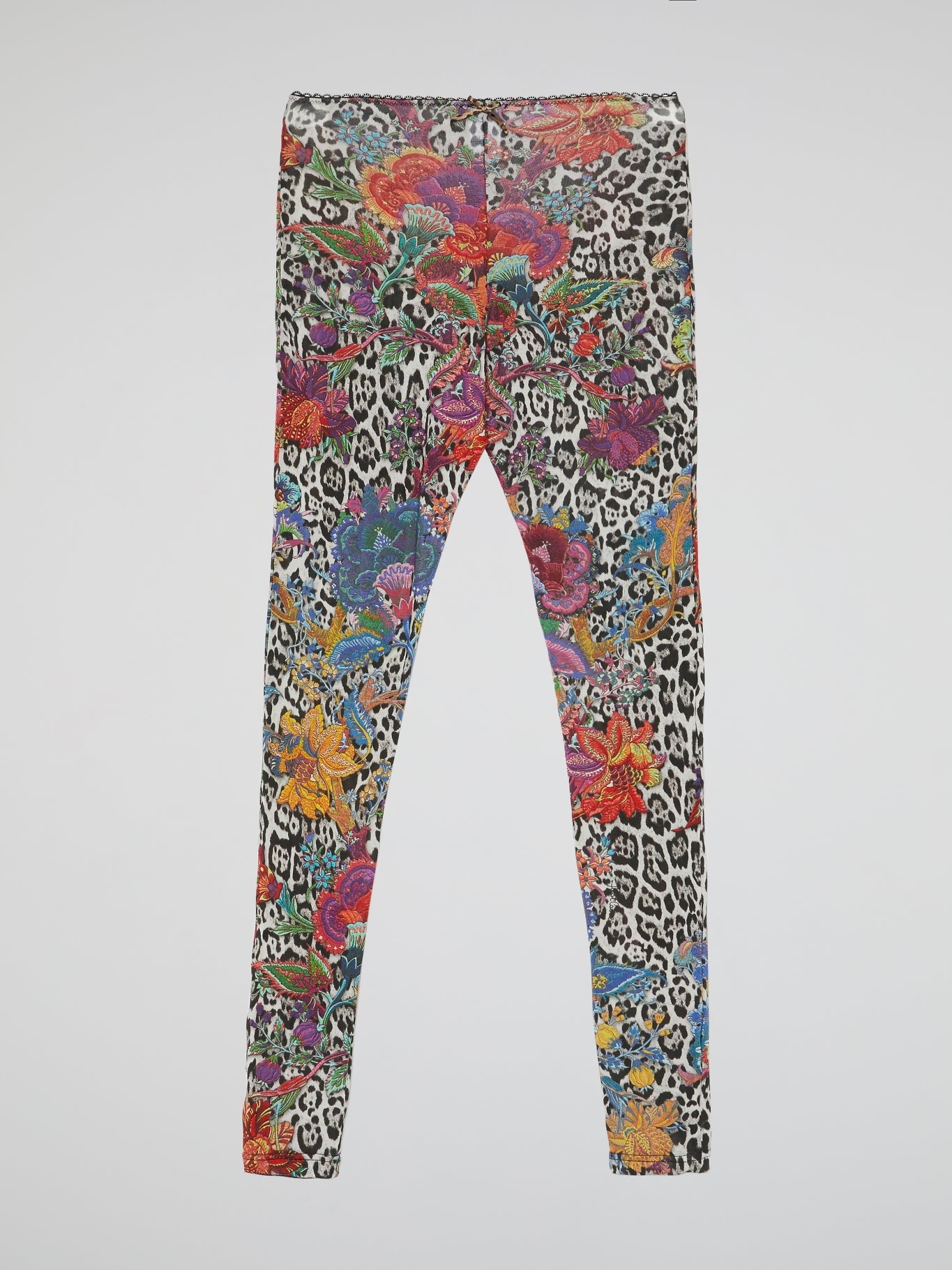Unleash your wild and feminine side with Just Cavalli's Leopard-Floral Print Leggings! These leggings feature a unique combination of classic leopard prints and bright floral patterns, making them the perfect statement piece for any fashion-forward woman. Whether dressed up with heels or worn casually with sneakers, these leggings are sure to turn heads and express your bold style.