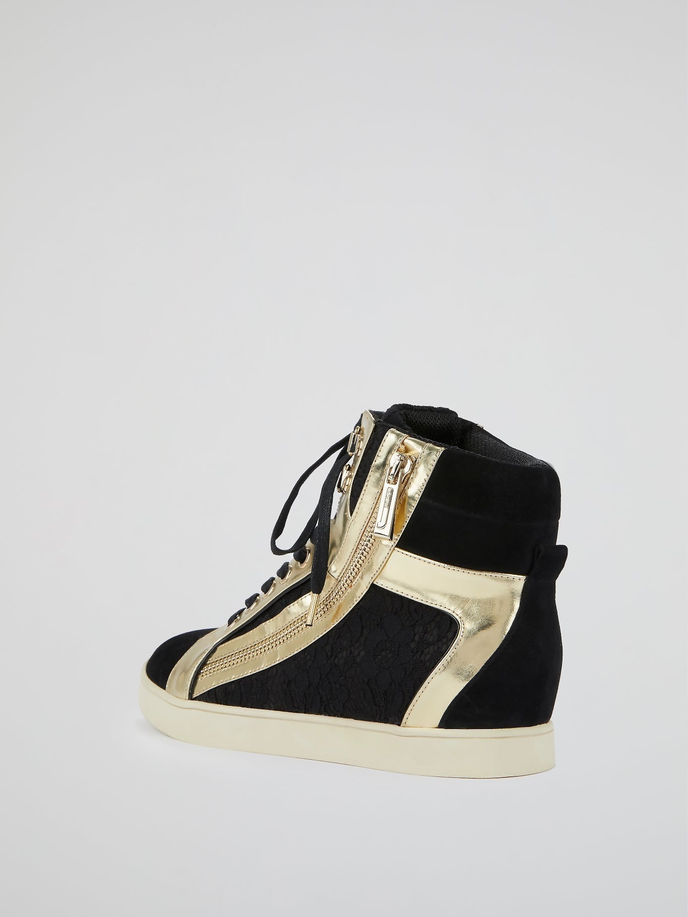 The Just Cavalli Gold Panel High-Top Sneakers are your ultimate style statement. Crafted with impeccable craftsmanship, these sneakers feature a sleek design with a touch of glamour. The shimmering gold panels add a touch of sophistication, making them perfect for everything from casual outings to special events.