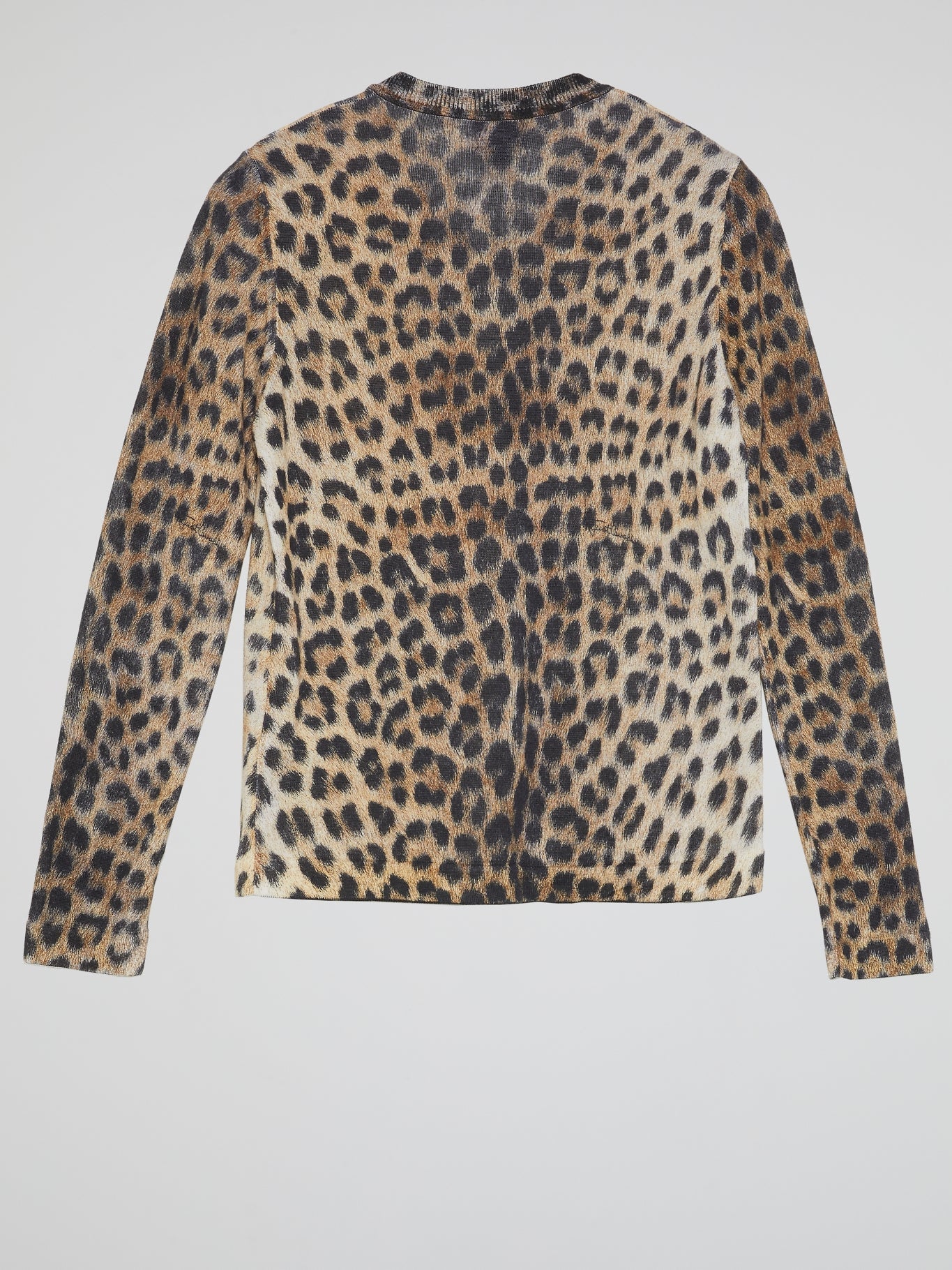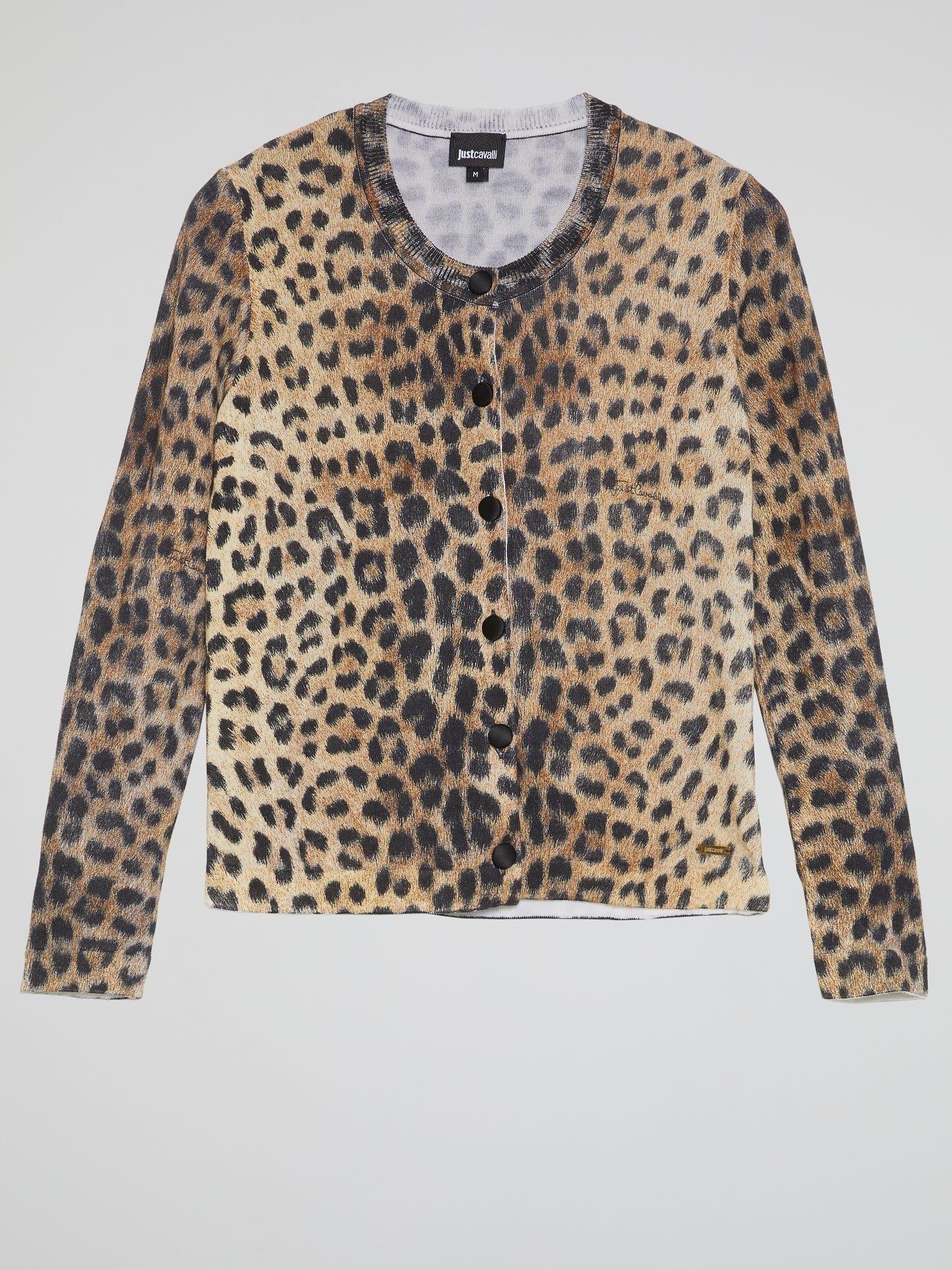 Unleash your wild side with the Leopard Print Button Up Top from Just Cavalli. Made with a fierce print and a flattering silhouette, this top is perfect for those who want to make a statement. Whether you're dressing it up for a night out or dressing it down for a casual day, this top is sure to turn heads.