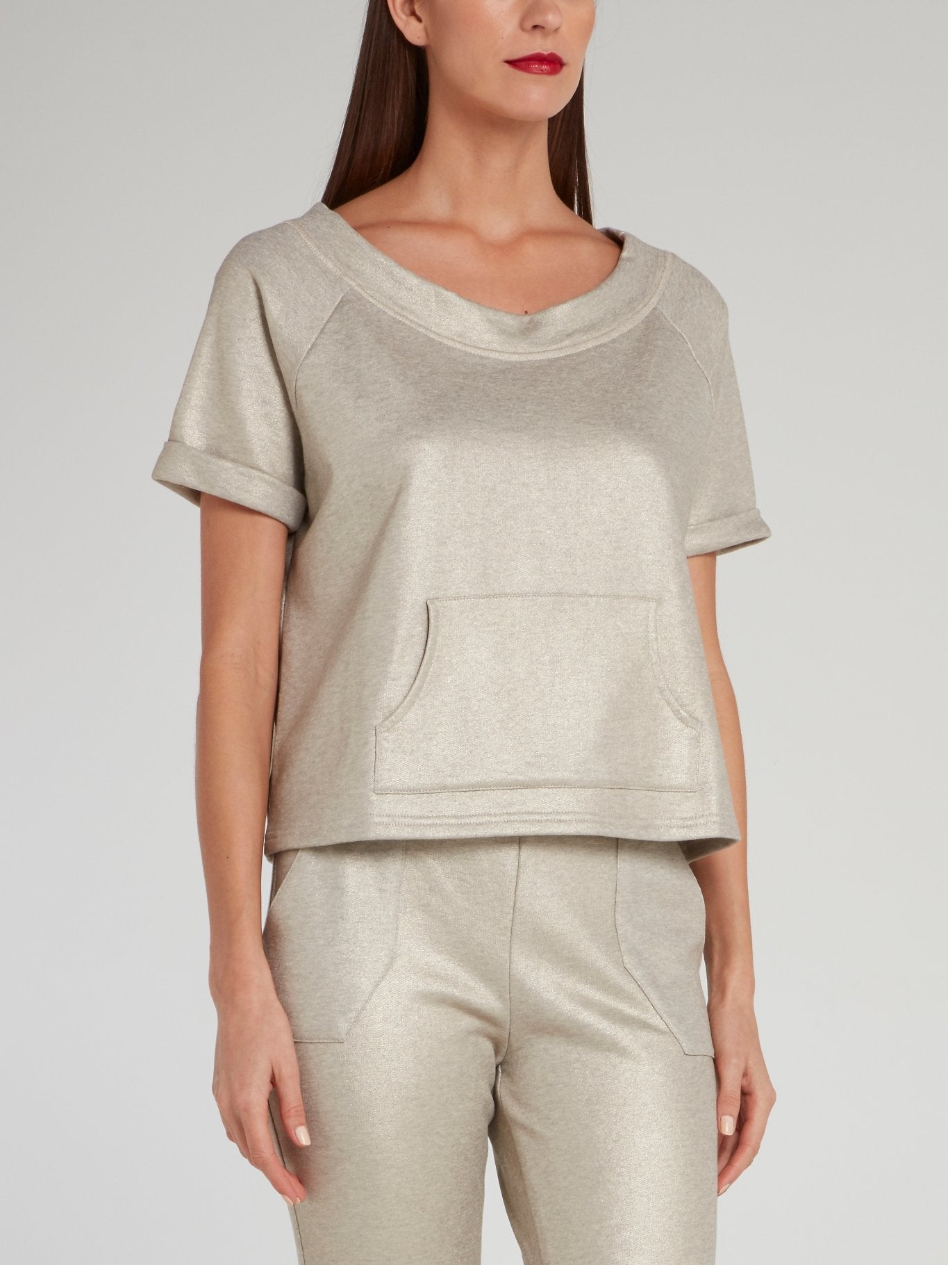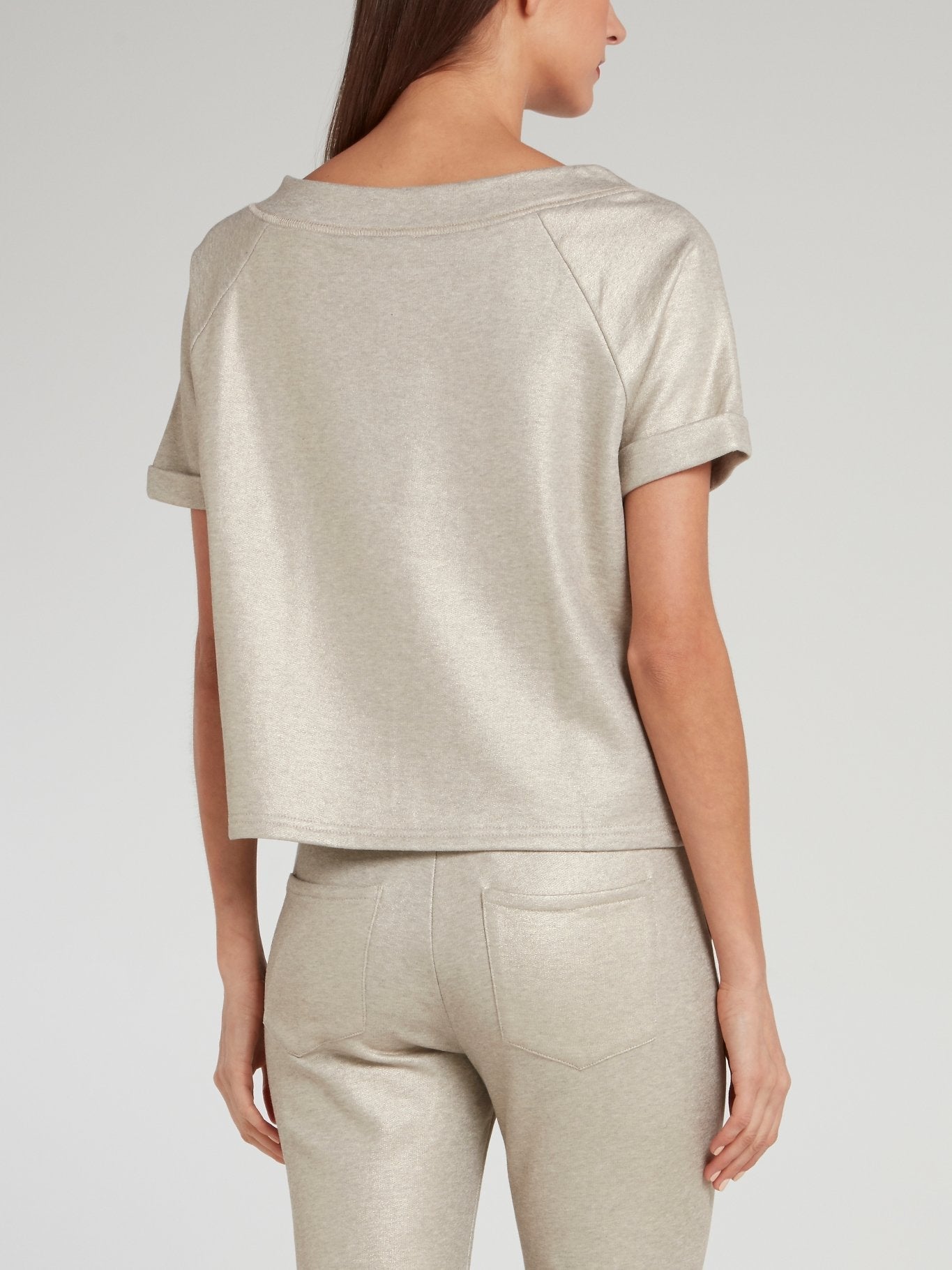 Introducing the Gold Coated Scoop Neck Cotton Top from Max & Moi - a classic wardrobe staple with a glam twist! This versatile top is crafted from super soft cotton and features a flattering scoop neckline, elevated by a luxurious gold coating that will add instant glamour to any outfit. Whether dressed up or down, this top is sure to be your new go-to for effortless chic style.