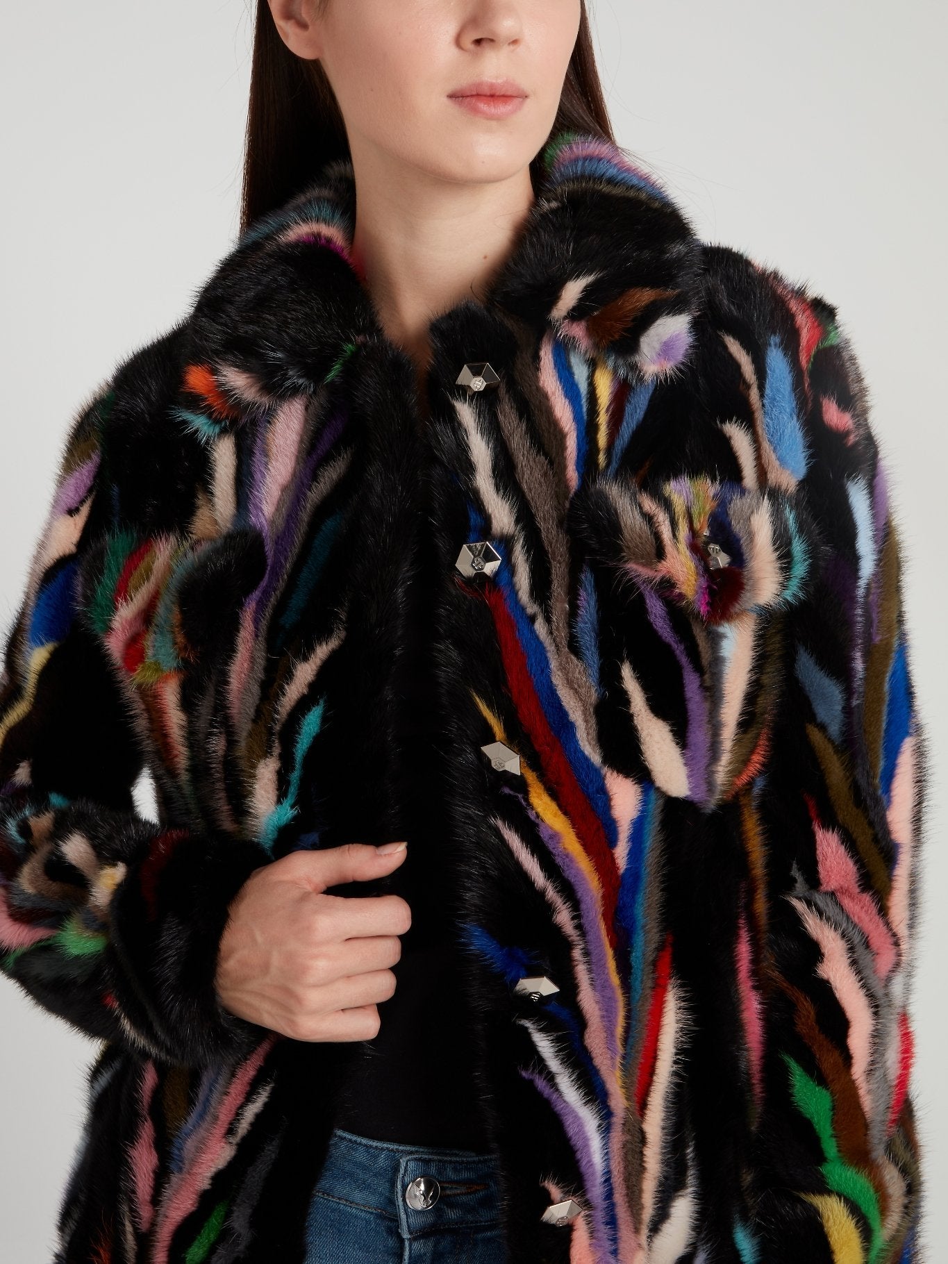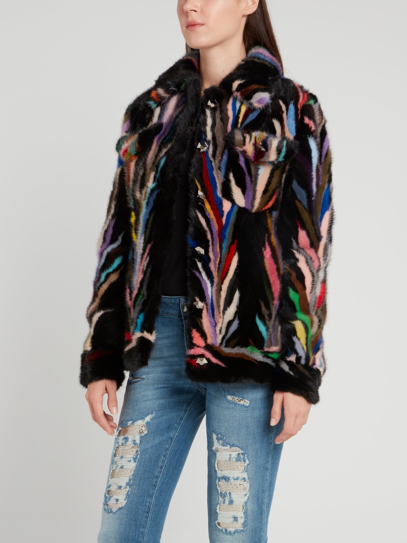 Experience luxury and style like no other with the Multicoloured Fur Jacket by Philipp Plein. The vivid and bold color combination creates a statement piece that instantly elevates any outfit. Made with high-quality materials, this jacket is the perfect addition to any fashionista's wardrobe, providing warmth, comfort, and a head-turning appeal no matter the occasion.