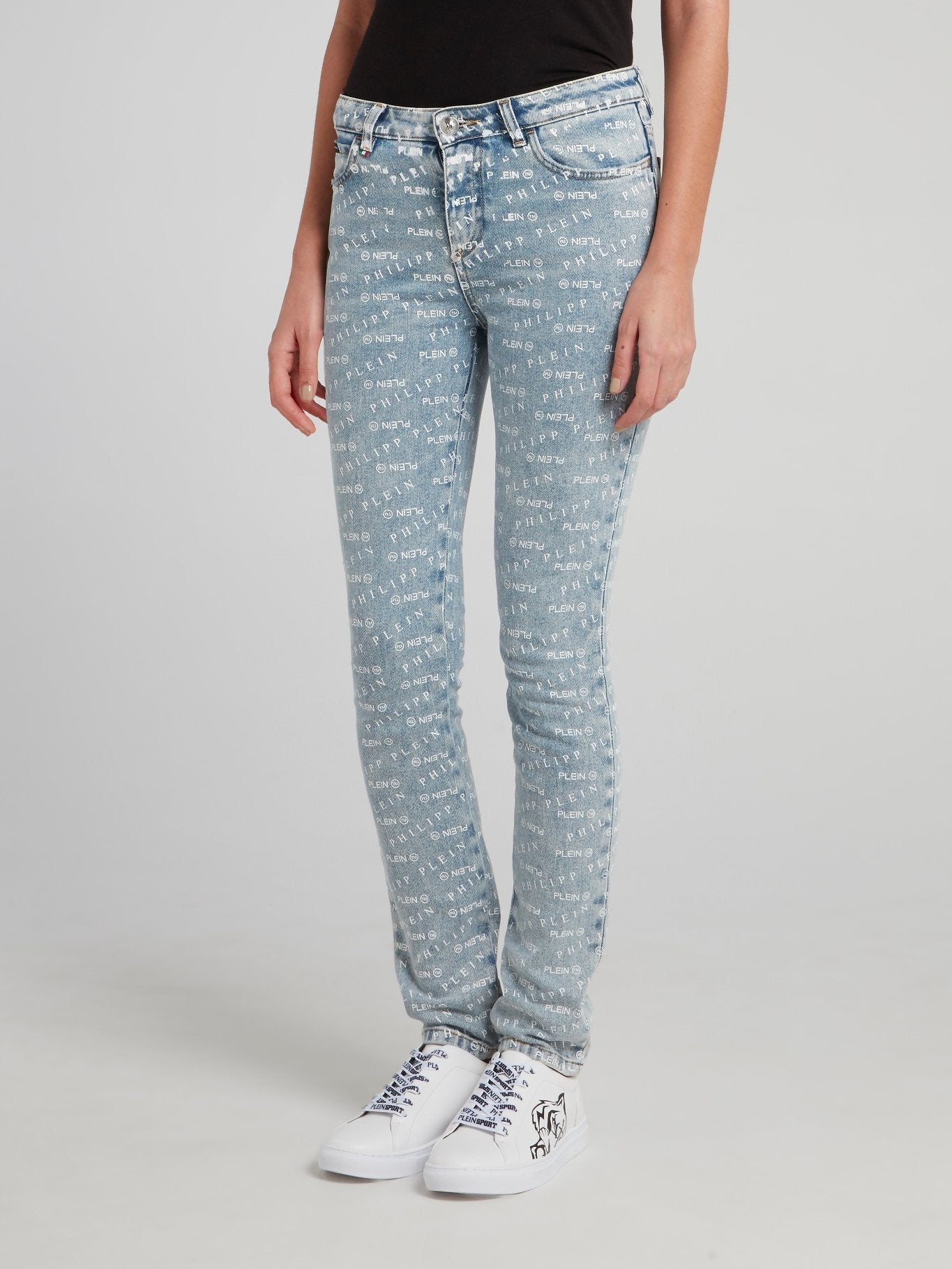 Looking for that perfect pair of jeans that'll make you stand out from the crowd? Look no further than the Monogram Print Slim Fit Denim Jeans from Philipp Plein. Crafted from premium denim, these jeans feature a sleek monogram print that's sure to turn heads, while the slim fit cut adds a stylish touch. Perfect for nights out on the town or just lounging at home, these jeans are a must-have for any fashion-forward individual.