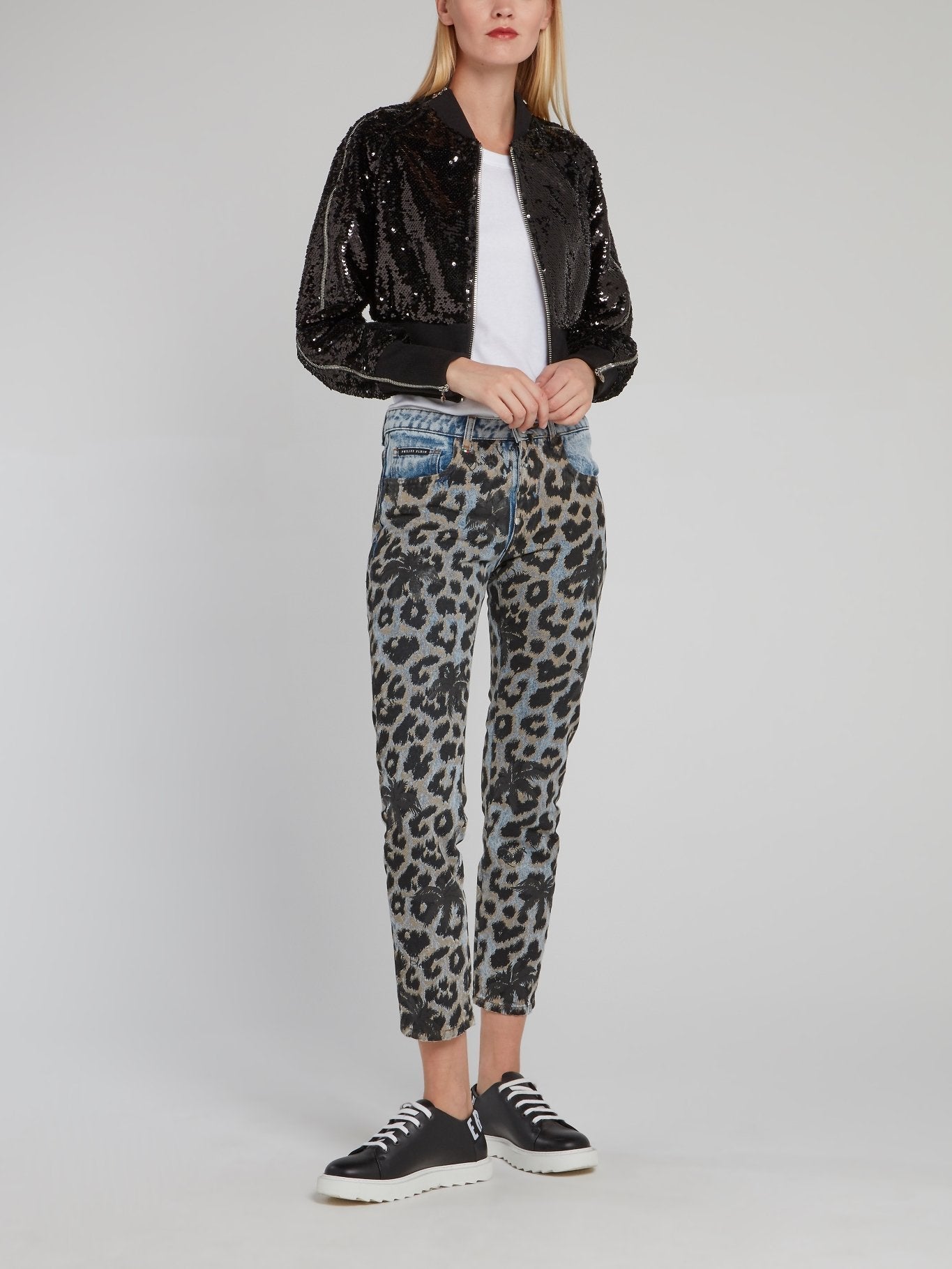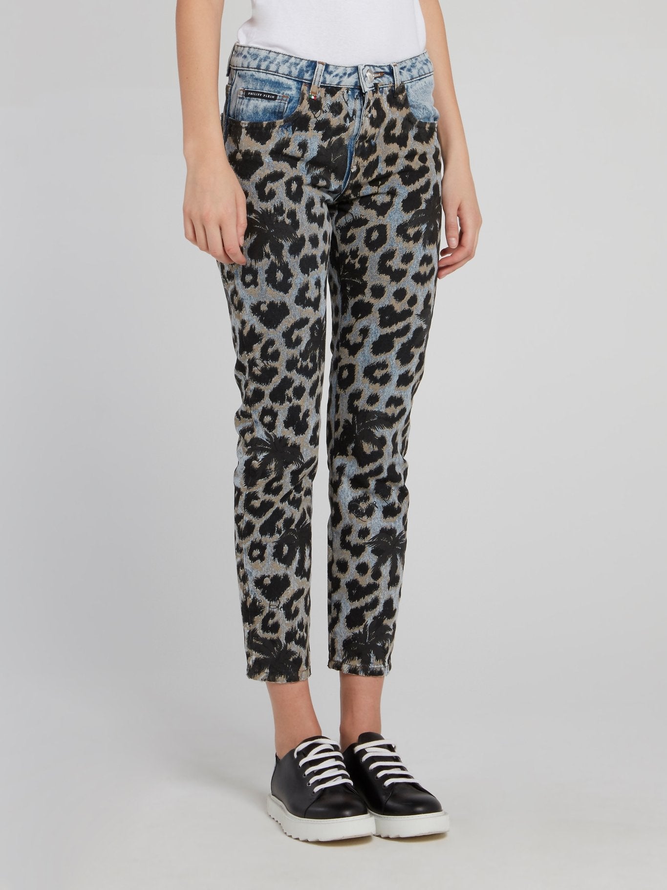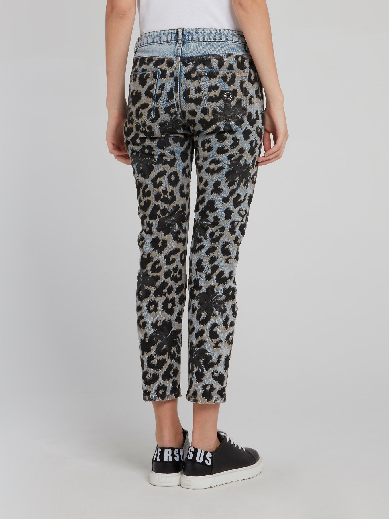 Get ready to roar in these stunning Leopard Print Denim Capri Pants by Philipp Plein! Crafted from premium quality denim fabric and adorned with a fierce leopard print, these capris will make you stand out from the crowd. Featuring a figure-hugging fit, a mid-rise waistband, and trendy cropped length, these jeans are the ultimate combination of style and comfort for any fashion-forward woman.