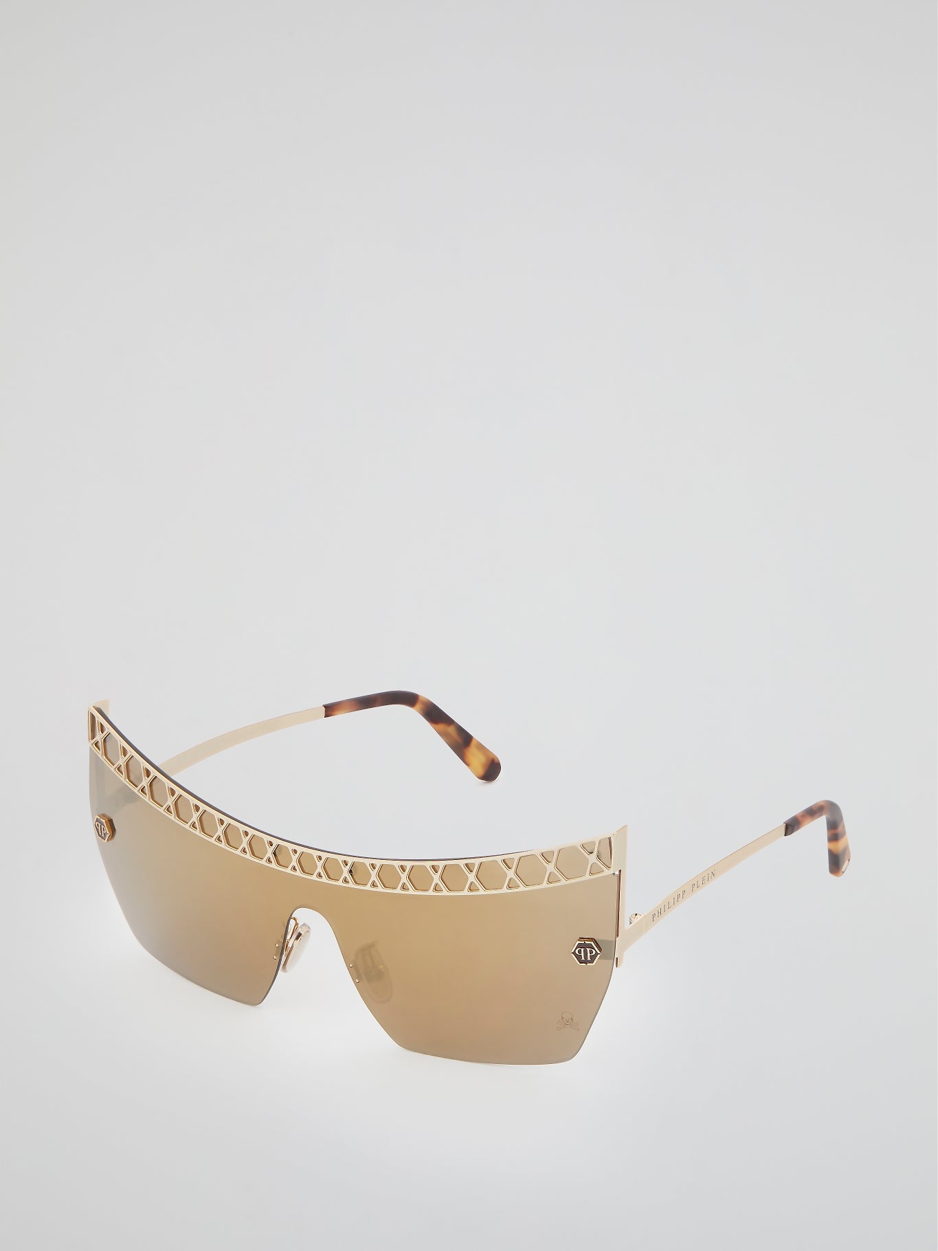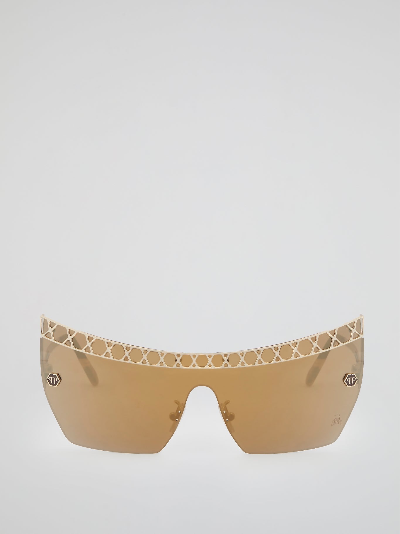 Unleash your inner superstar with the Gold Rimless Square Sunglasses from Philipp Plein! These stylish shades exude luxury and edginess, perfect for those who want to make a bold fashion statement. Their sleek gold frame and square shape will make you stand out in any crowd, while the UV protection lens keeps your eyes safe from harmful rays. Elevate your fashion game with these sunnies and turn heads wherever you go!