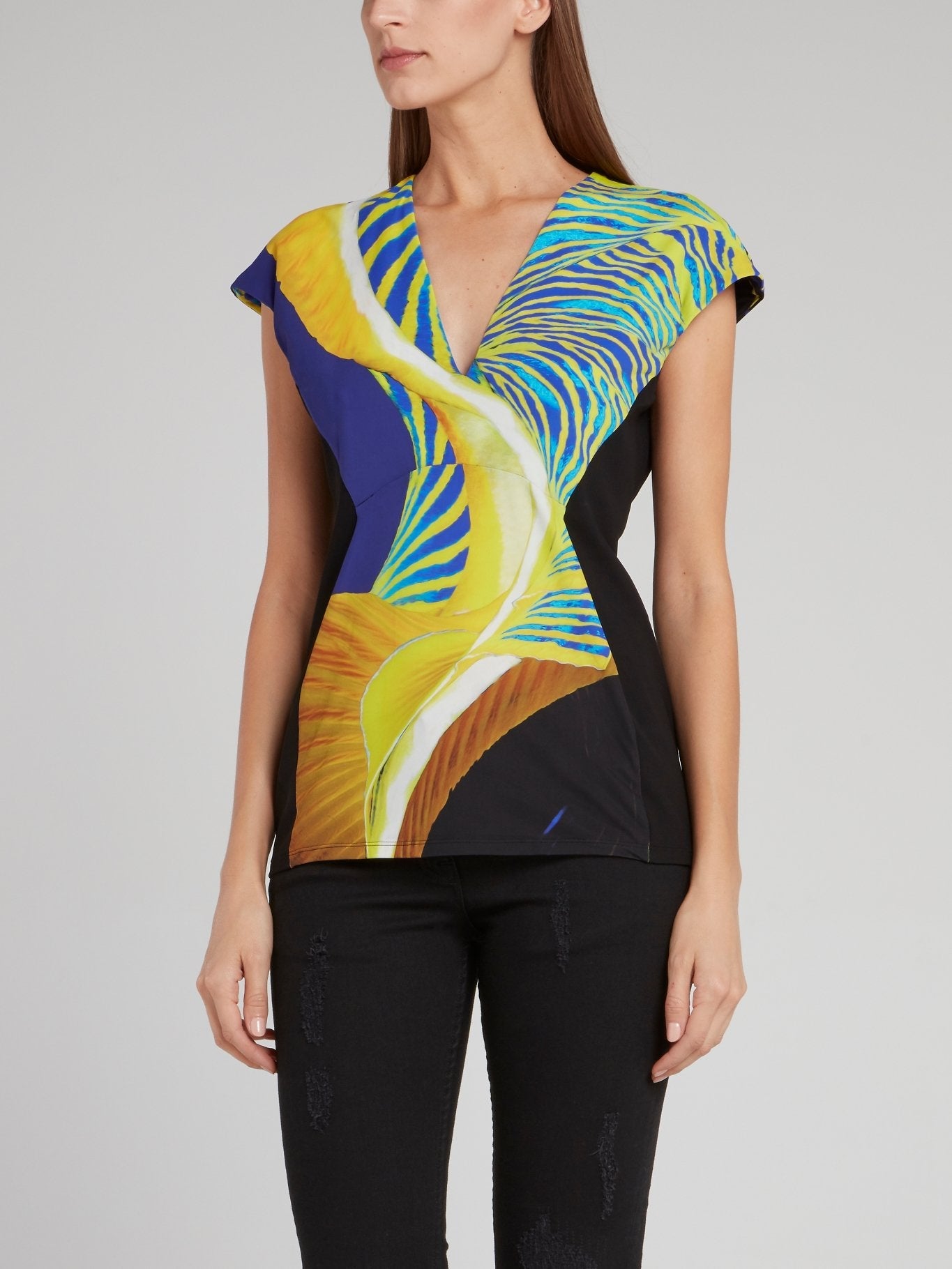 Bring a splash of vibrant colors to your wardrobe with the Multicolored Cap Sleeve Shirt from Roberto Cavalli. Crafted from high-quality materials, this shirt features a stylish cap sleeve design and a unique geometric pattern that is sure to turn heads. Perfect for a day out with friends, this shirt is a true fashion statement that reflects your bold and confident personality.