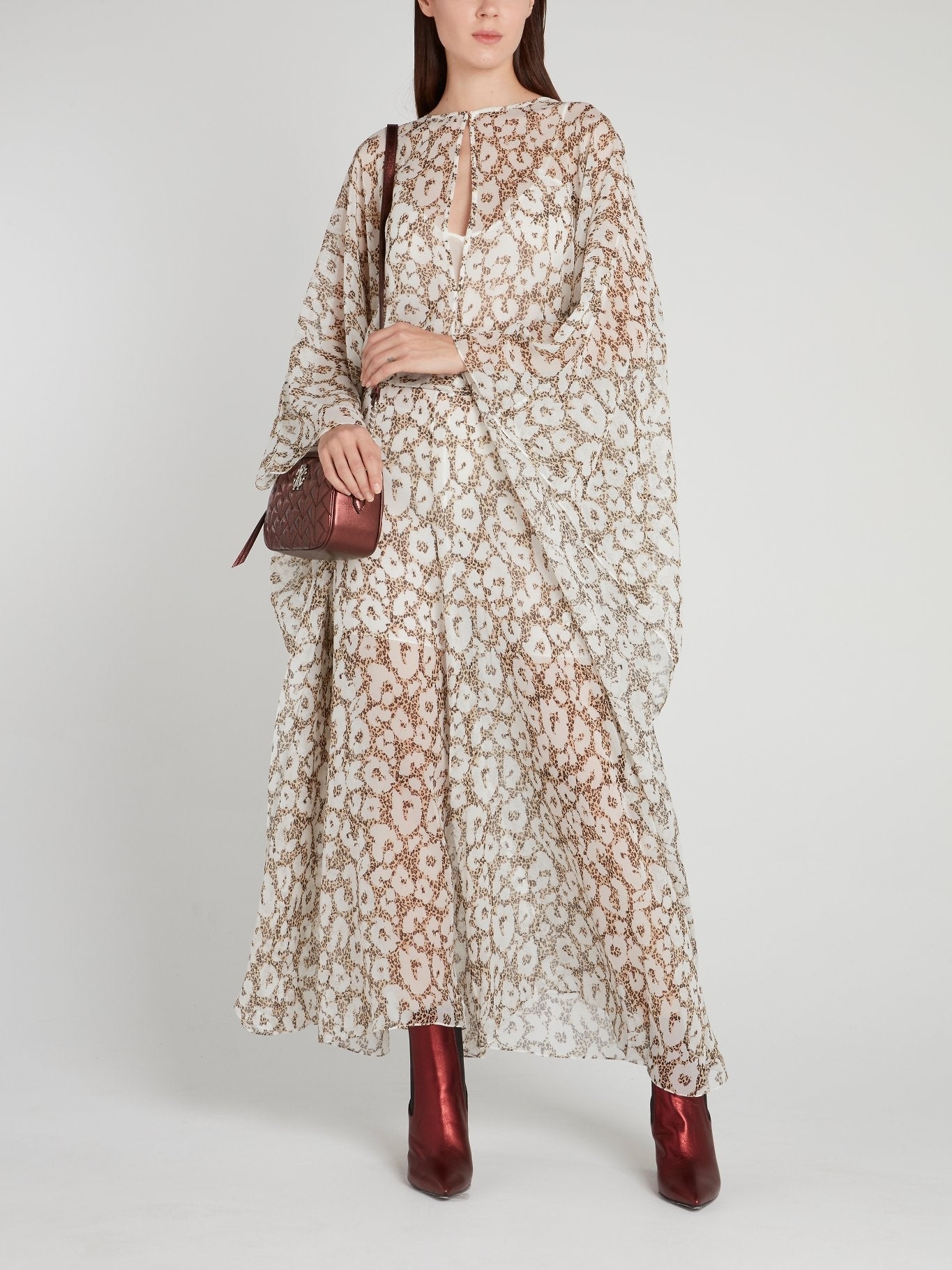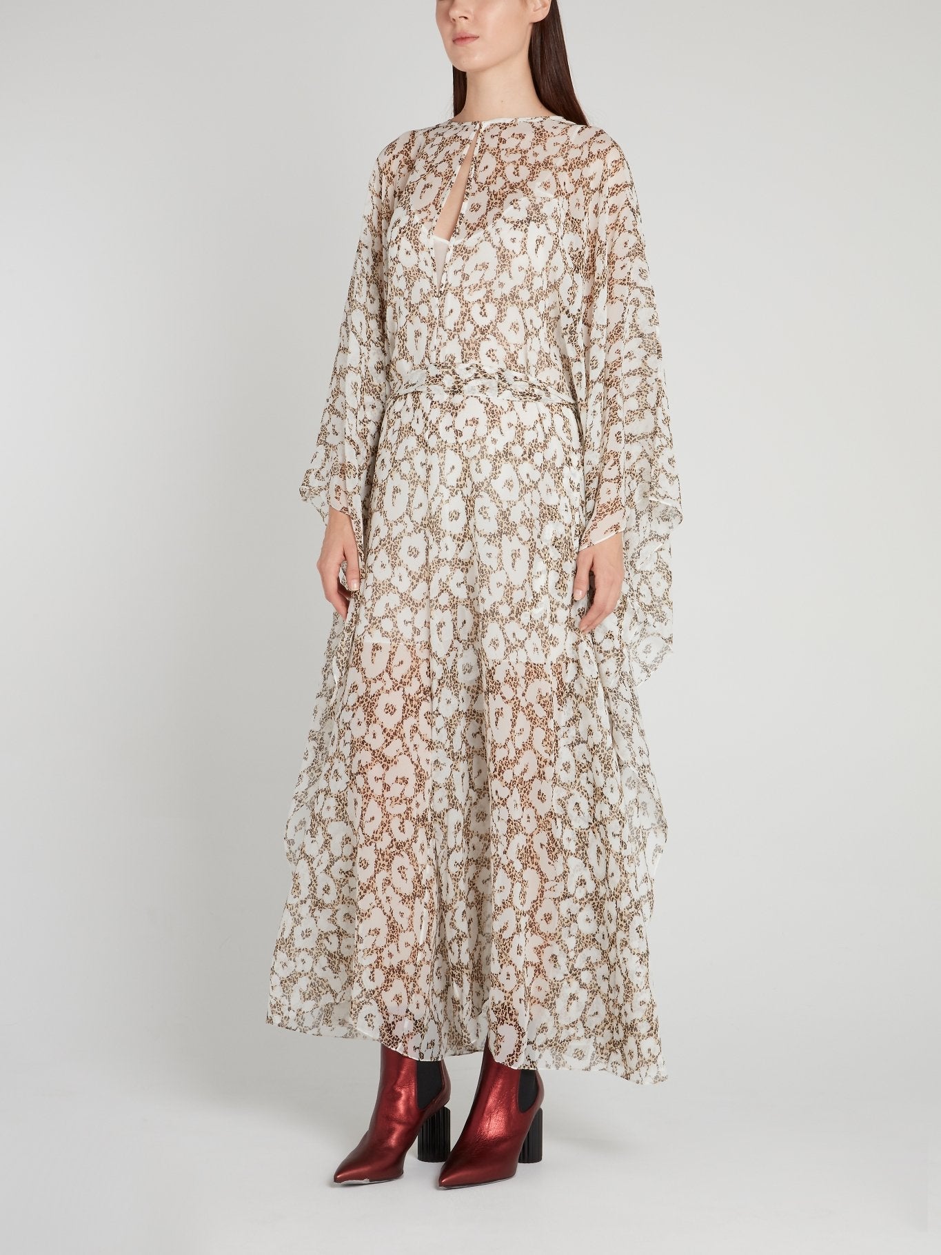Leopard Effect Keyhole Silk Dress