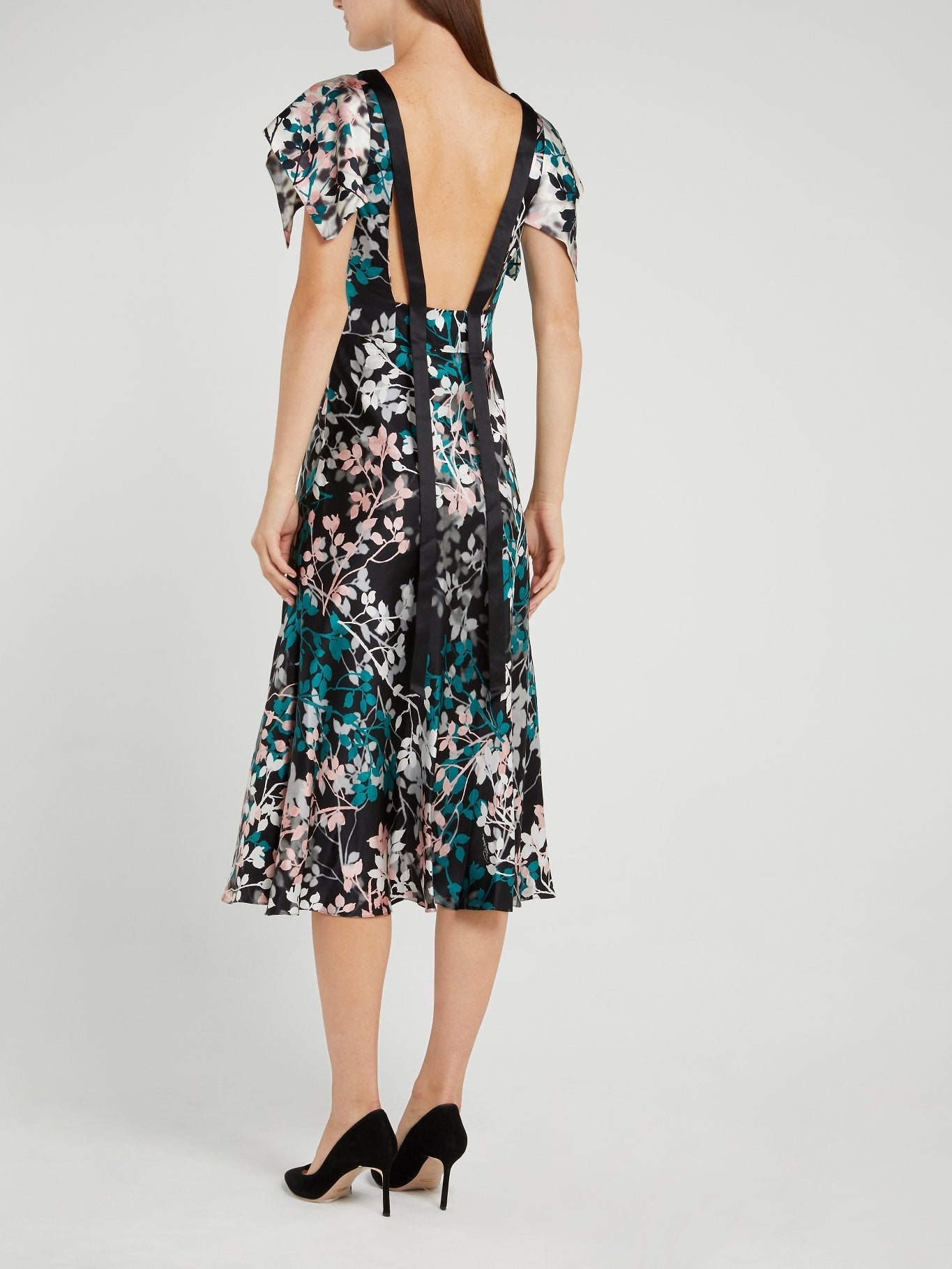 Experience ultimate fashion statement with the stunning Leaf Print Open Back Midi Dress from Roberto Cavalli. Made from luxurious fabric, this dress features a vibrant botanical prints, and an ultra-chic open back design that adds a touch of allure to any event, from a night out on the town or a formal cocktail party. Perfectly combining elegance and comfort, this dress is sure to turn heads and leave a lasting impression.