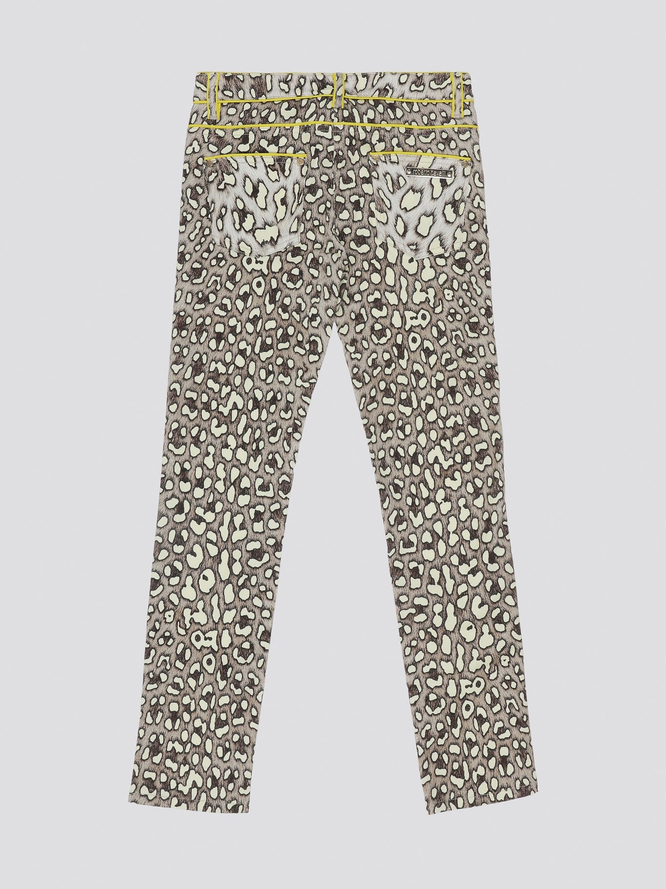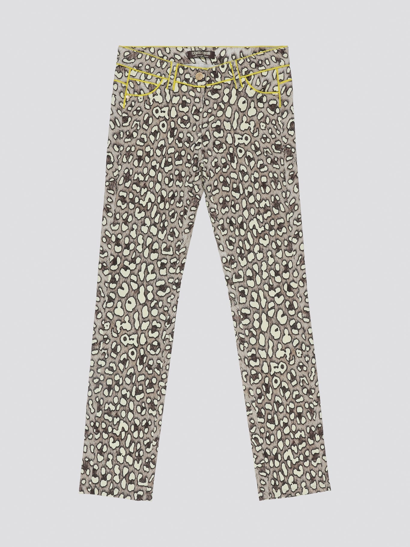 Step into fierce style with these Leopard Print Wide Leg Jeans by Roberto Cavalli. Embrace your wild side with the bold leopard print pattern that is sure to make a statement wherever you go. The wide leg silhouette adds a touch of elegance to these edgy jeans, perfect for a fashion-forward look.