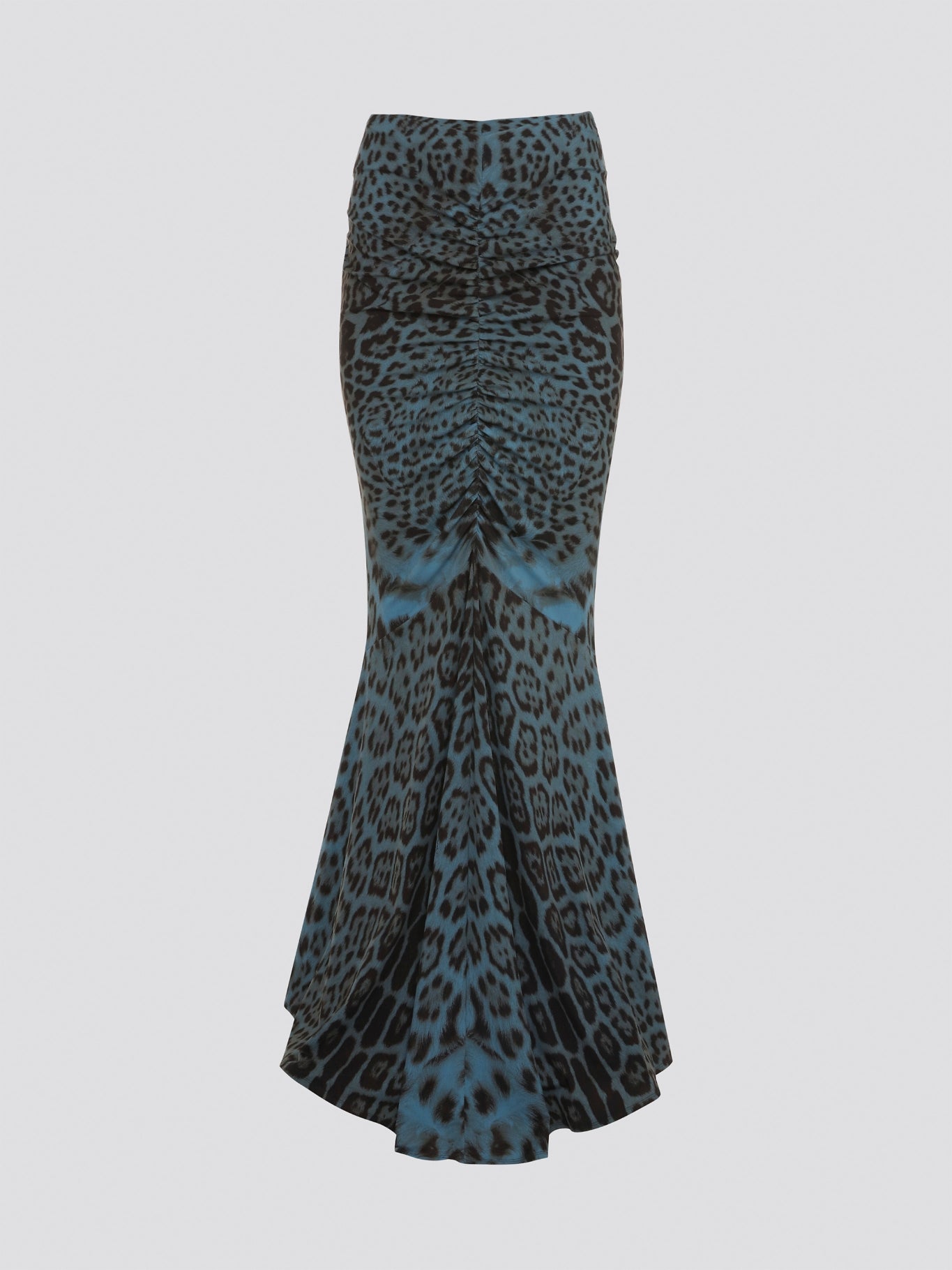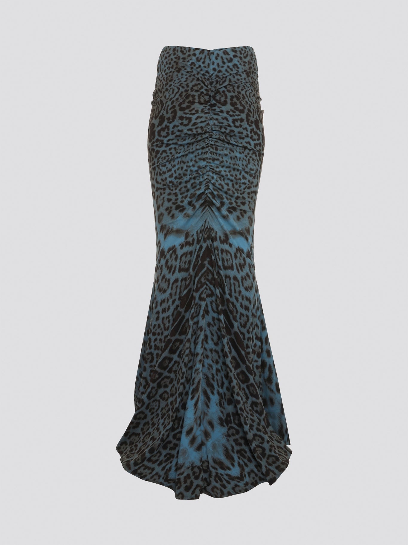 Embrace your wild side with Roberto Cavalli's Leopard Print Ruched Maxi Skirt. This statement piece features a bold and fierce print that will turn heads wherever you go. The ruched detailing adds a touch of glamour and elegance to this must-have skirt. Stand out from the crowd and unleash your inner fashionista with this show-stopping piece from Roberto Cavalli.
