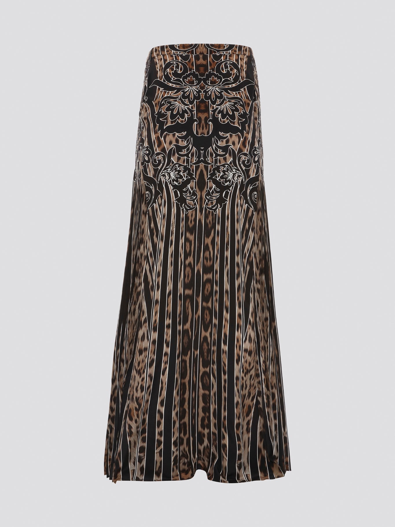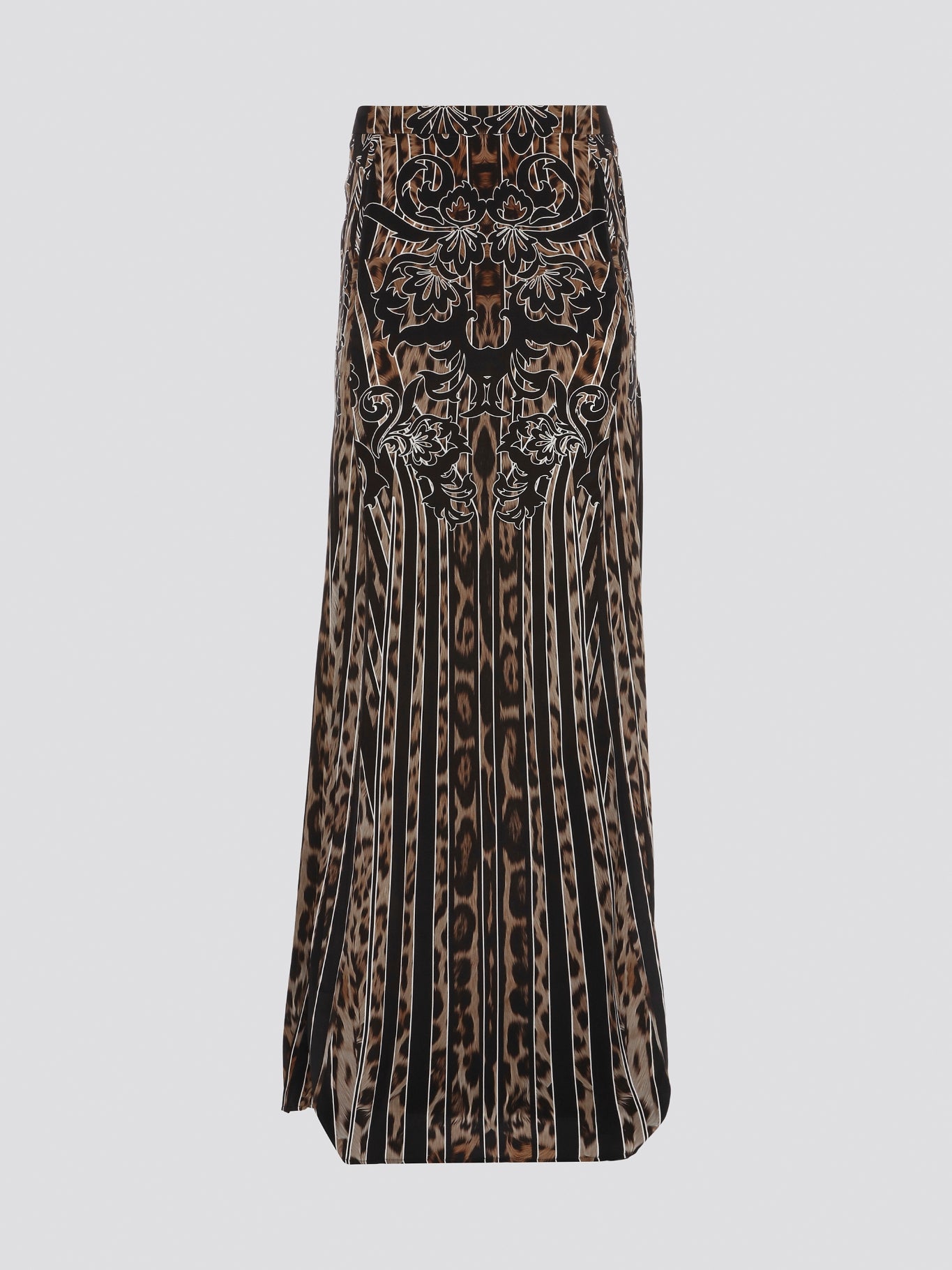 Walk on the wild side with our stunning Roberto Cavalli leopard print maxi skirt. Crafted from luxurious materials, this skirt effortlessly combines elegance with a touch of fierceness. Make a bold statement at any event with this eye-catching piece that is sure to turn heads.