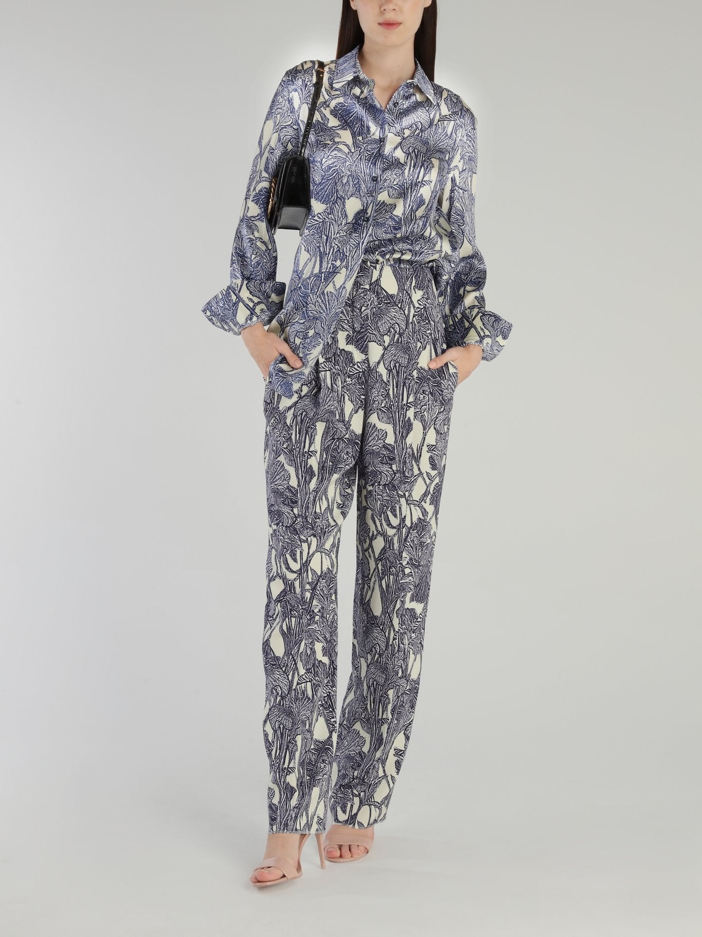 This label's wide-leg pants sport a sculptural dimension that will add a sophisticated touch to your casual wardrobe. This staple piece has a tailored waistline, a charming loose shape, and an all-over carefree design for a light and breezy attitude. These well-fitting trousers are all about comfort, adaptability, and style, with a design that smoothly stretches into a flaring silhouette that is crafted to perfection in versatile fabric. Turn heads as you stride your way through by donning this outfit with a contrasting top.