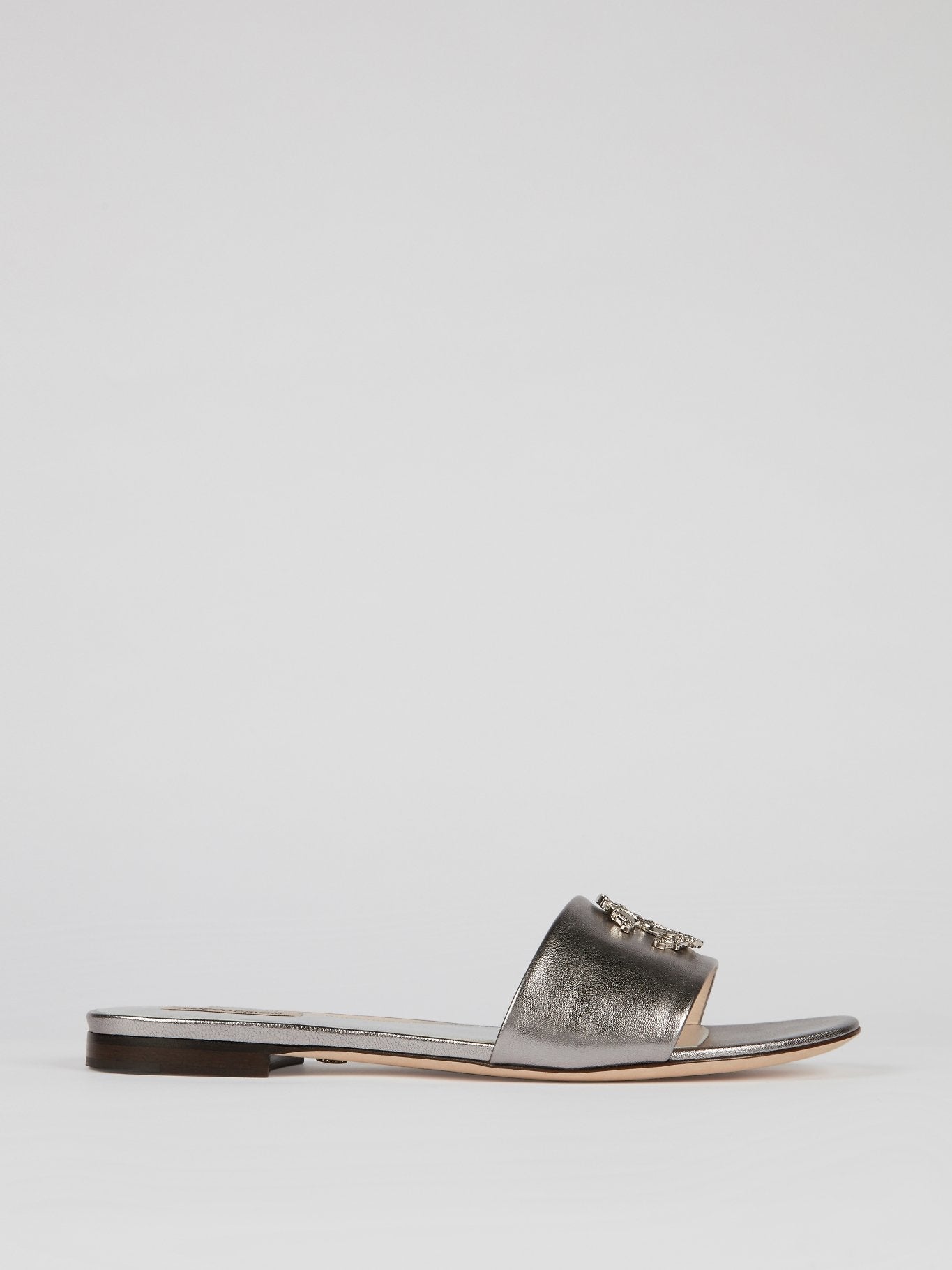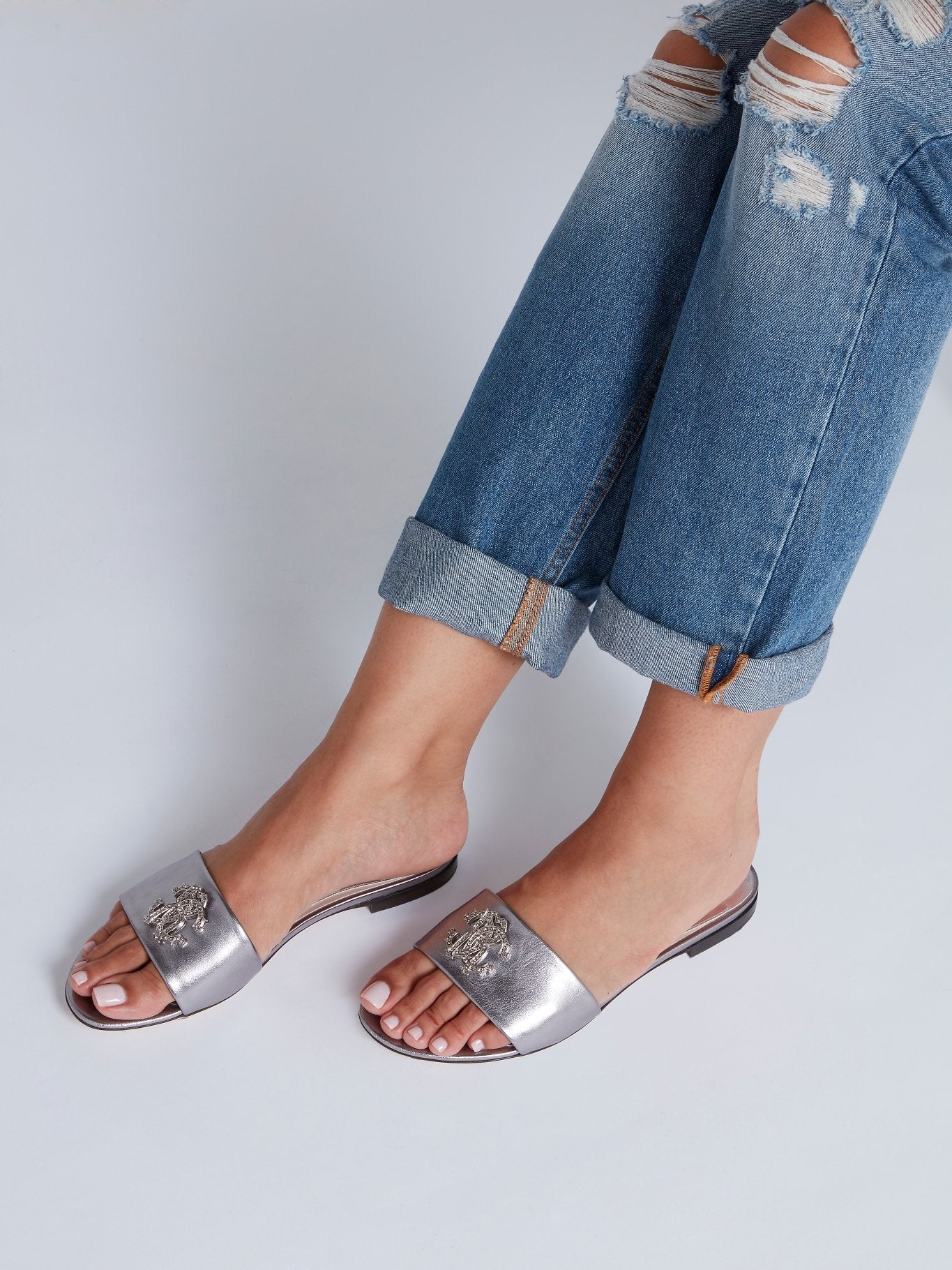 Step out in style with these gorgeous Metallic Studded Monogram Leather Sandals from Roberto Cavalli. Crafted from premium quality leather, these sandals feature a stunning monogram design with chic metallic studs that add an unmatched flair to your outfit. Be the center of attention wherever you go, whether you're headed to a summer brunch or a night out with your girls.