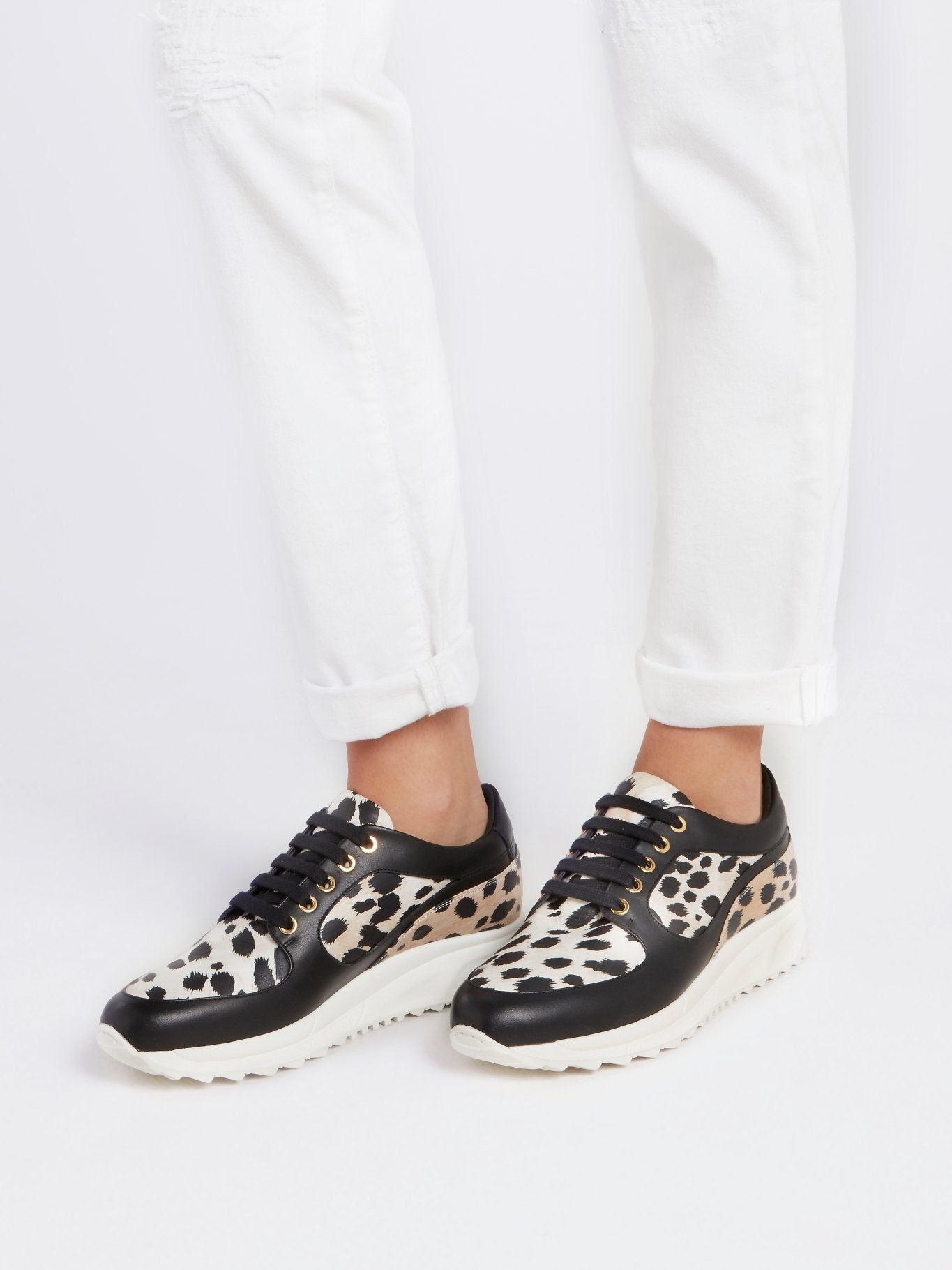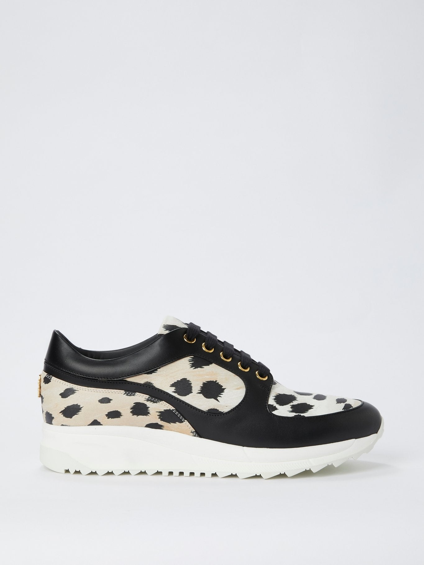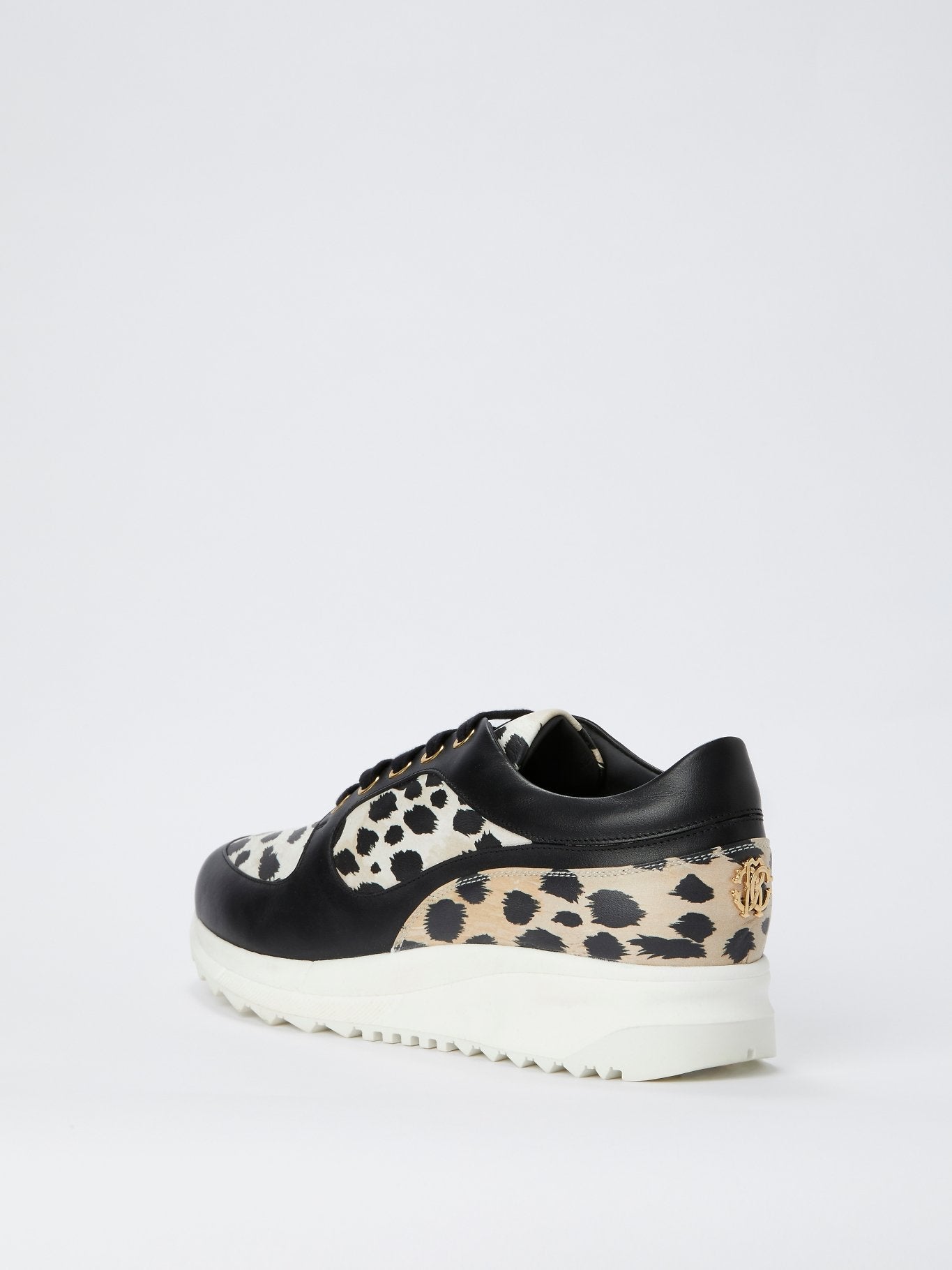Step up your shoe game with the stunning Leopard Panel Lace Up Sneakers by Roberto Cavalli. Made with premium materials and a stylish leopard print, these sneakers are perfect for adding a pop of excitement to any outfit. With their comfortable fit and bold design, you can confidently rock these sneakers all day long.