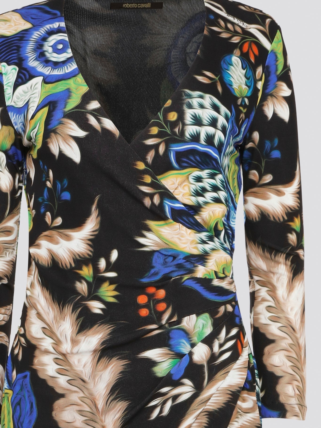 Elevate your summer style with the Foliage Wrap Mini Dress by Roberto Cavalli, a stunning piece that exudes elegance and charm. Featuring a vibrant floral print and a flattering wrap silhouette, this dress is sure to turn heads wherever you go. Perfect for daytime brunches or evening soir��es, this dress is a must-have for the fashion-forward woman looking to make a statement.