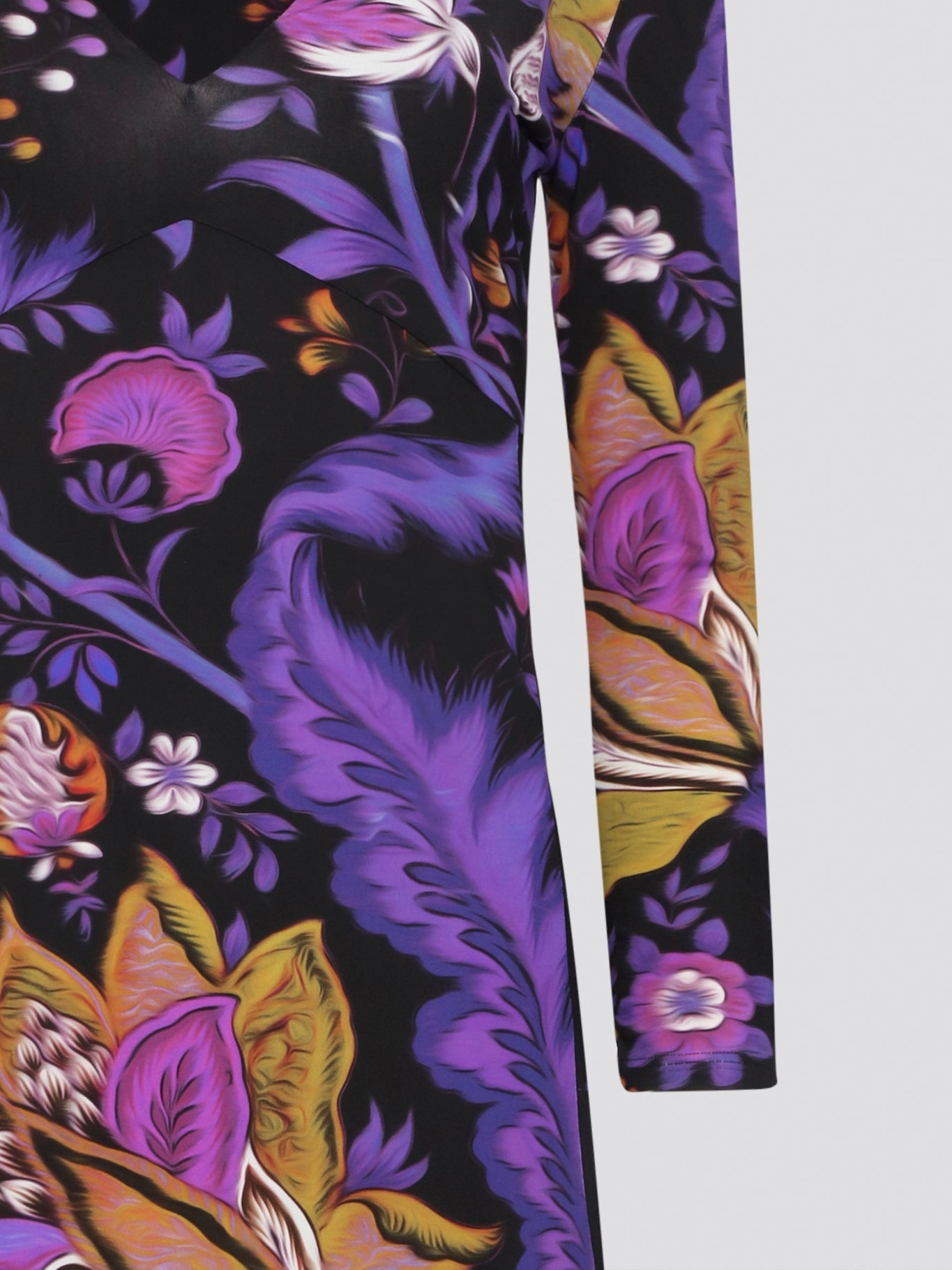 Elevate your wardrobe with the Foliage Plunge Flared Dress by Roberto Cavalli, a stunning piece that exudes sophistication and elegance. The intricate foliage print and plunging neckline create a striking contrast, making this dress a true statement piece for any special occasion. With a flattering flared silhouette and luxurious fabric, you'll feel like a modern goddess every time you slip into this exquisite garment.