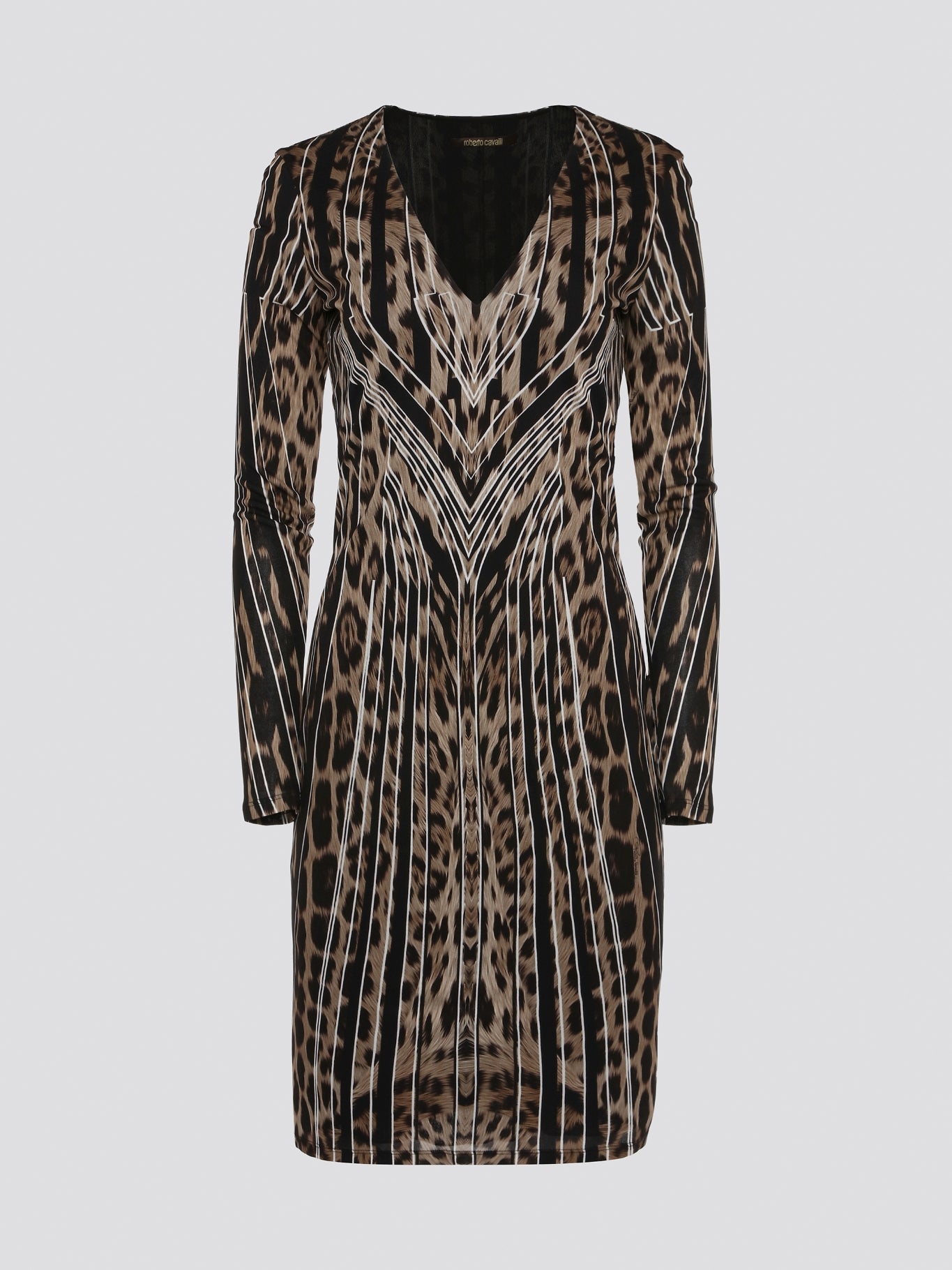 Step into the wild side with our Roberto Cavalli Leopard Print Long Sleeve Dress! This stunning statement piece features a fierce leopard print design that is sure to turn heads wherever you go. Made with high-quality materials, this dress embodies luxury and sophistication, making it the perfect choice for any stylish fashionista. Dress to impress and unleash your inner feline with this captivating Leopard Print Long Sleeve Dress from Roberto Cavalli.