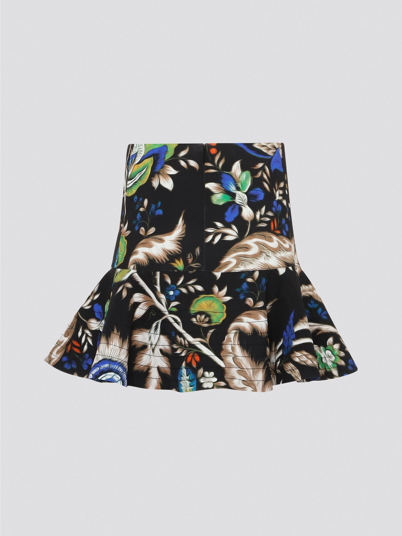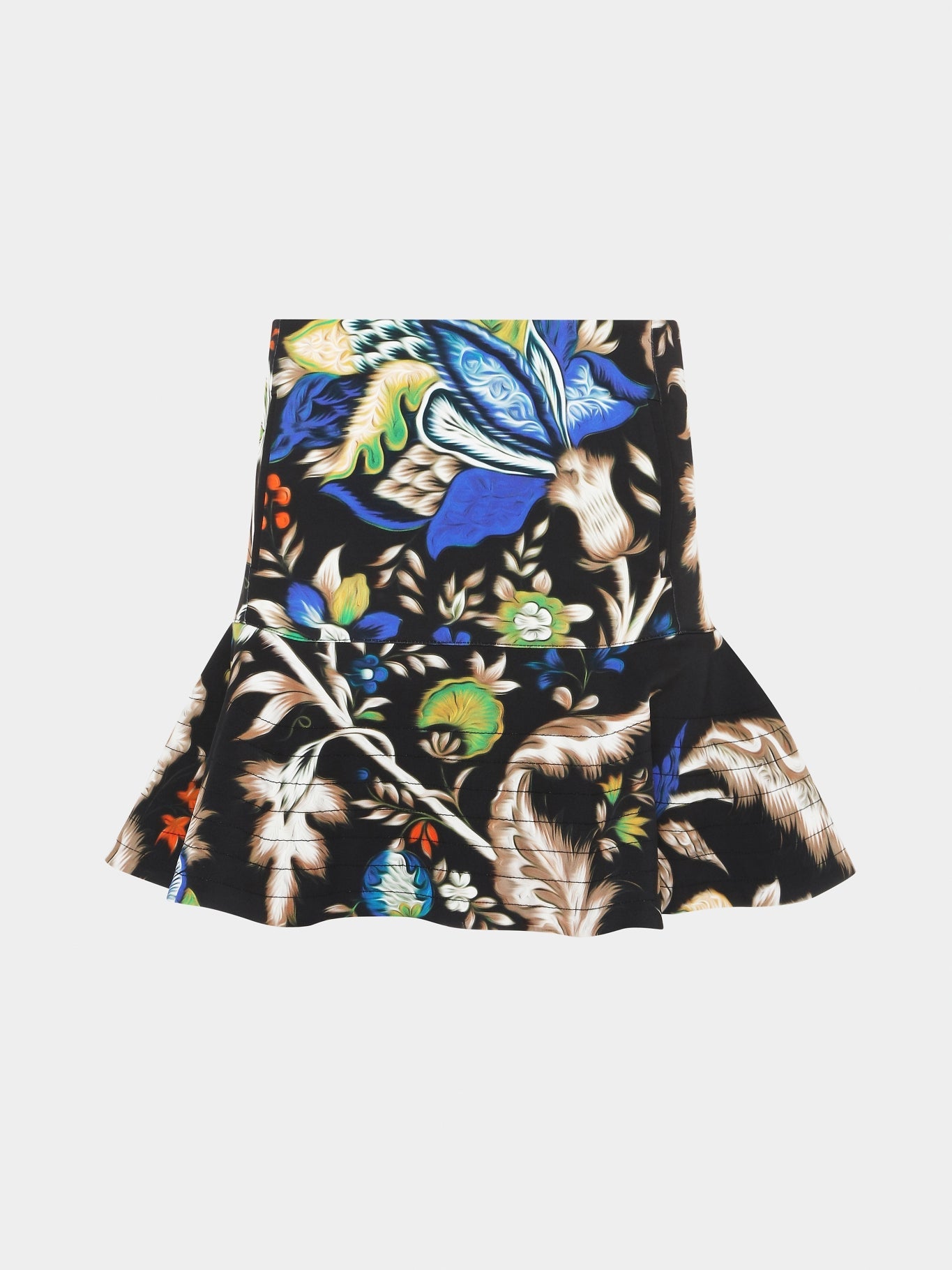 Feel fabulous and fierce in the Foliage Flared Mini Skirt by Roberto Cavalli, designed to make a statement with its bold, botanical print. This mini skirt is perfect for adding a touch of drama to your wardrobe, with its flirty flared silhouette that will have heads turning wherever you go. Embrace your inner wild side and elevate your style with this show-stopping piece from Roberto Cavalli.